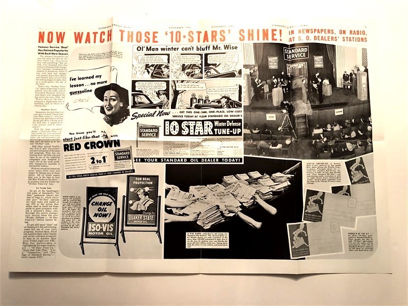 The November 1941 issue of the Standard Service News, the illustrated monthly newspaper Standard Oil Company ( Indiana ) Service Stations. this large 8 page issue is in fine condition. Loads of photos, articles of current interest. sales tips, jokes and more.