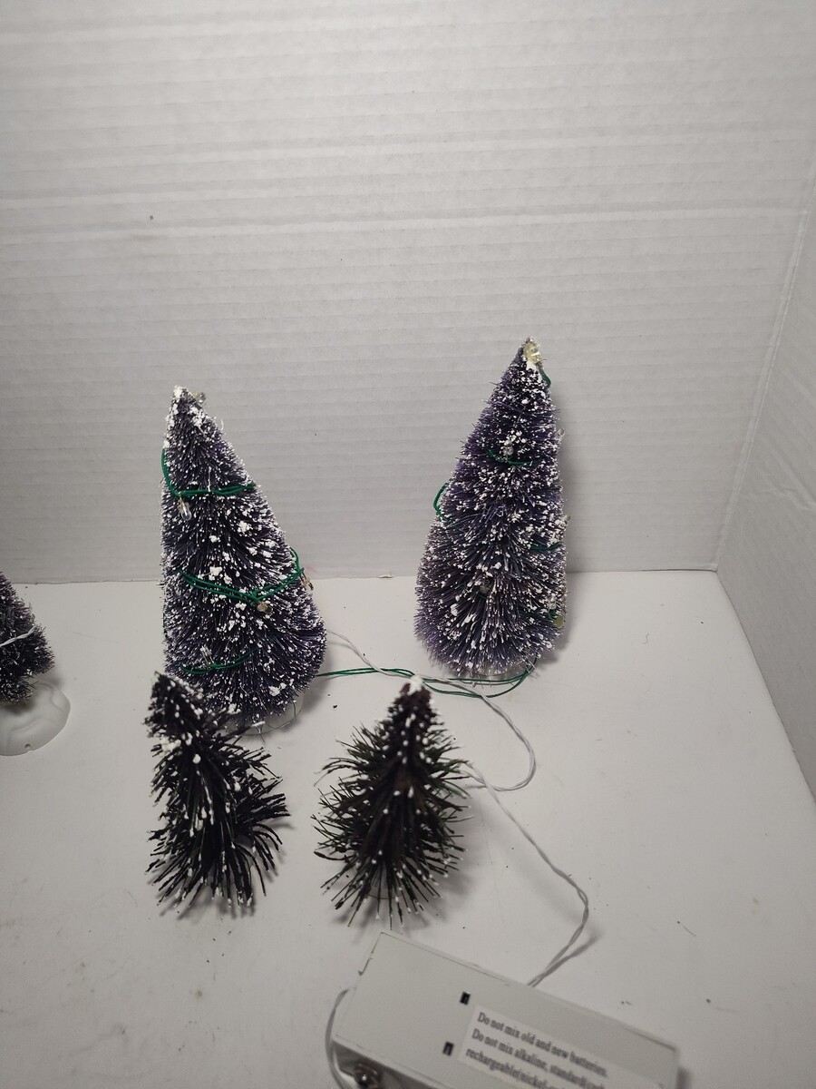 Christmas Village Street Signs Pine Tree's (Lighted and plain) 11 Piece Lot