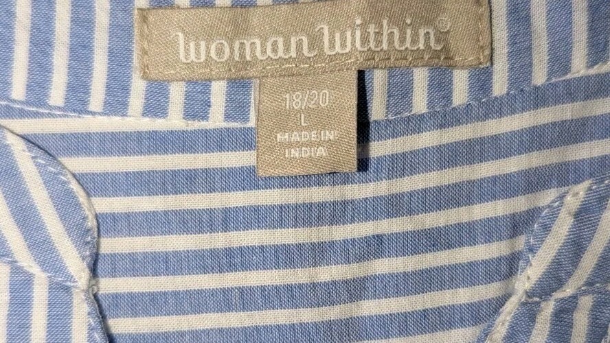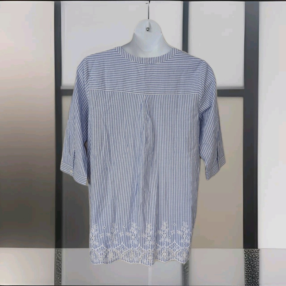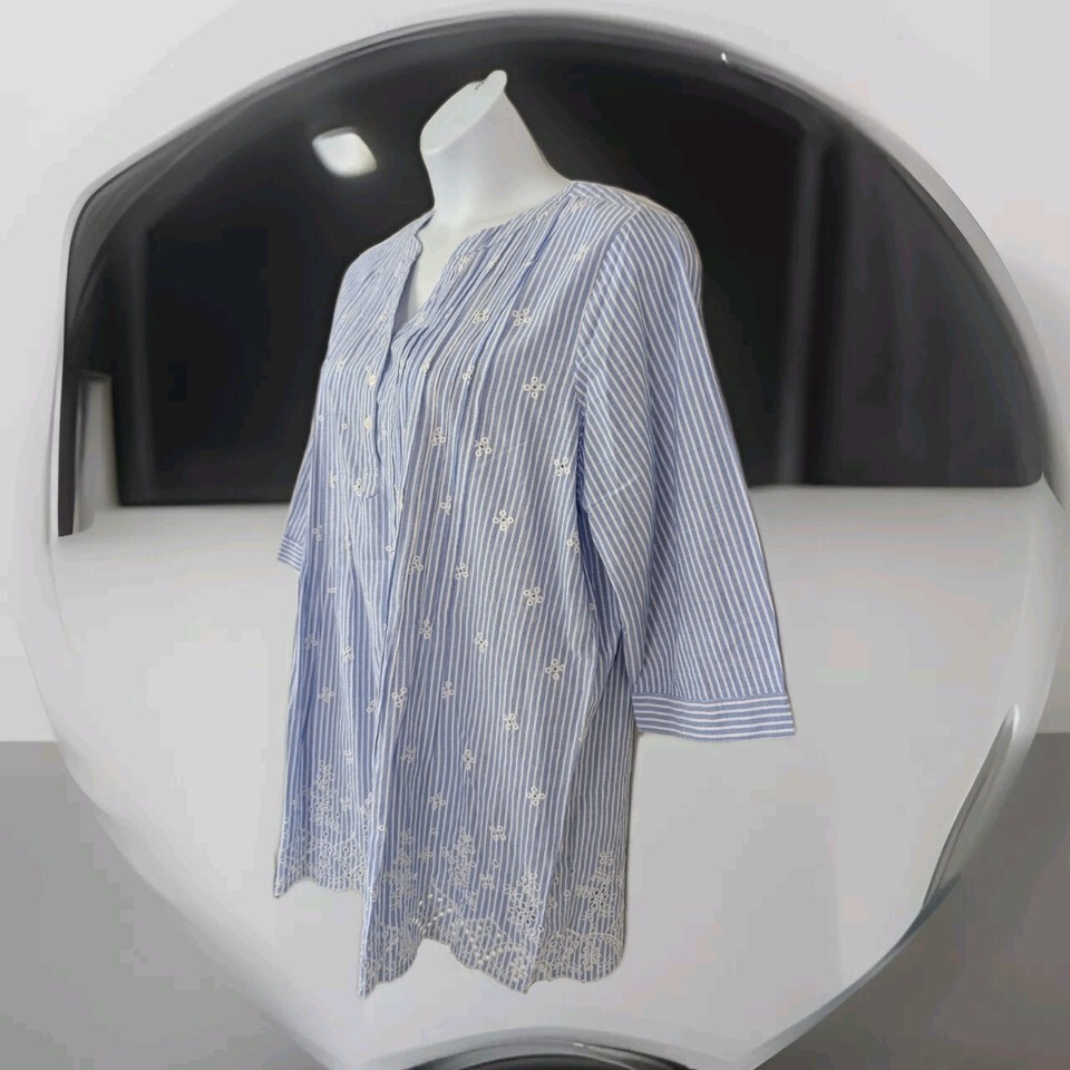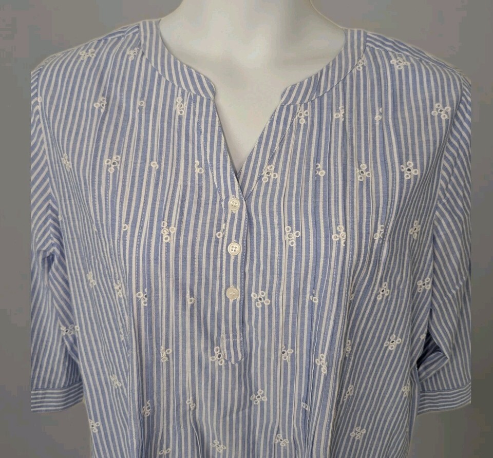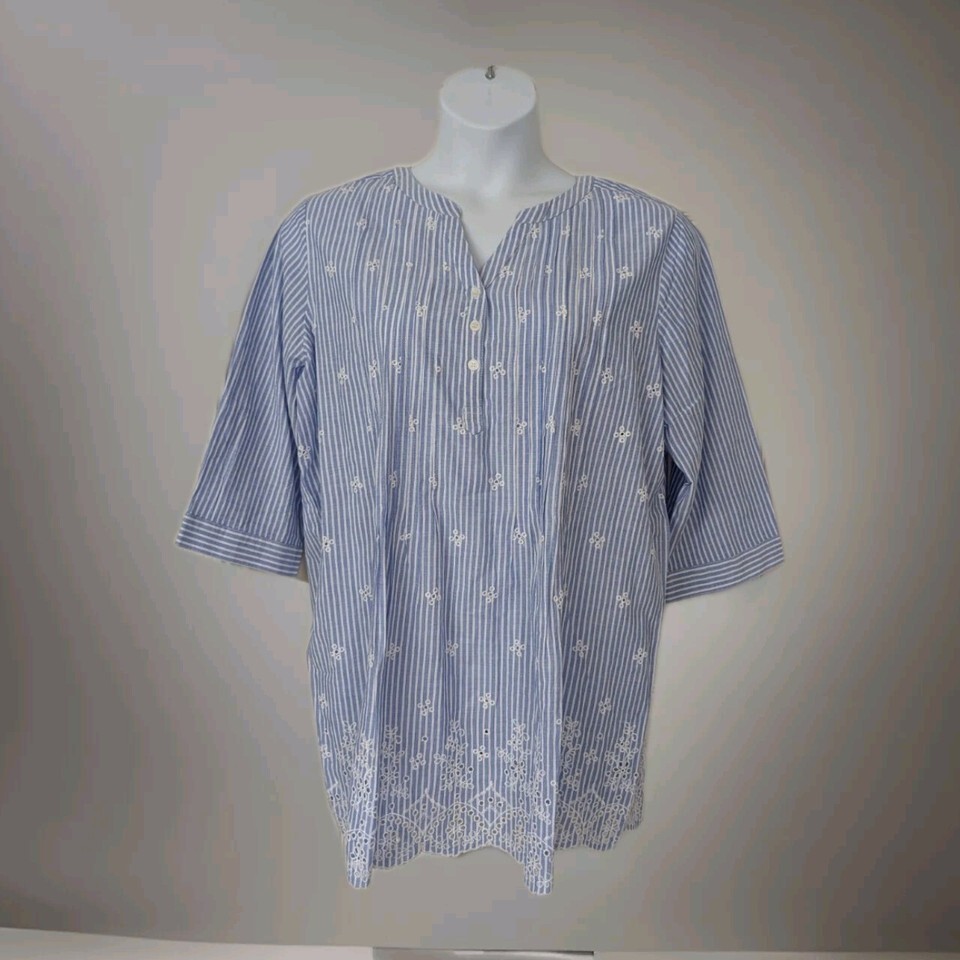 Woman Within Large 18/20 Tunic Top Eyelet Embroidered Cottage core Blue White. Condition is Pre-owned - Excellent. Shipped with USPS Ground Advantage.