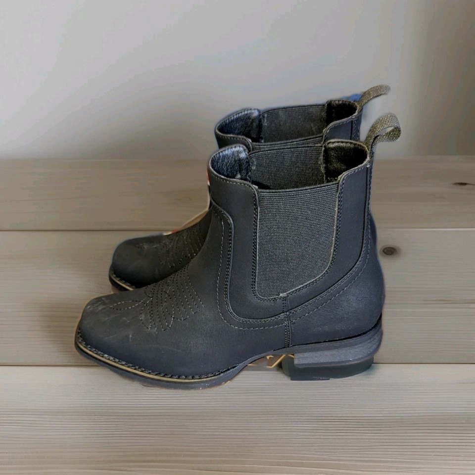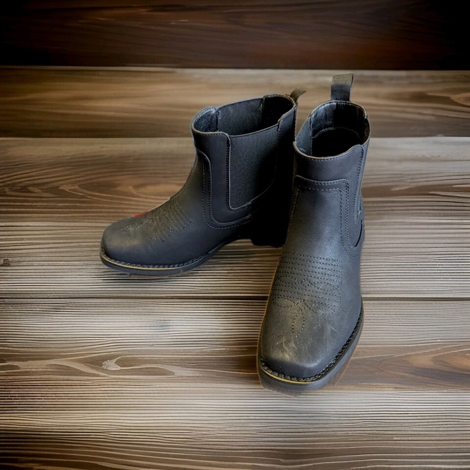 J's.o.l.e Black Ankle Cowboy Boots for Men Square Toe Chelsea Boots Size 7.5