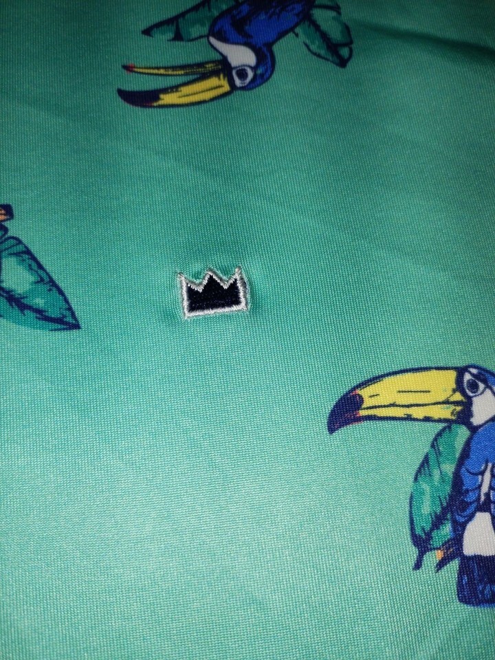 CROWN & IVY Men's XL Polo Shirt Short Sleeve Stretch Performance Toucan Print