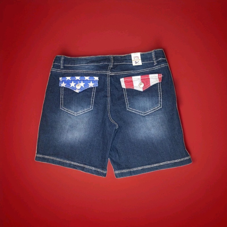 LEI Ashley Low Rise American Flag Jean Shorts Junior Size 15 Fourth Of July