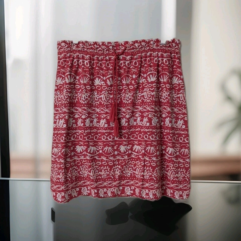 Talbots Mini Skirt Women's Large petite Geo Print Cotton Side Slit Drawstring. Condition is Pre-owned - Excellent. Shipped with USPS Ground Advantage.