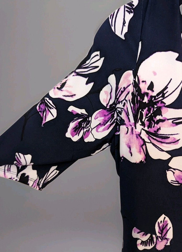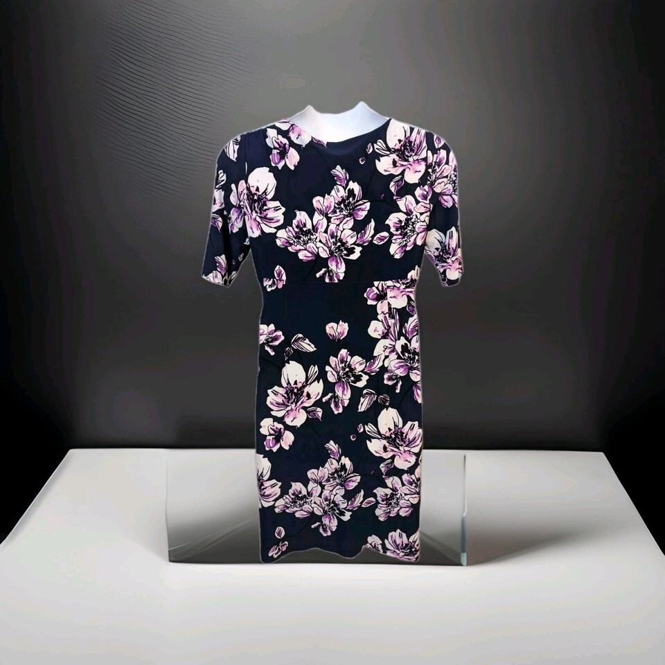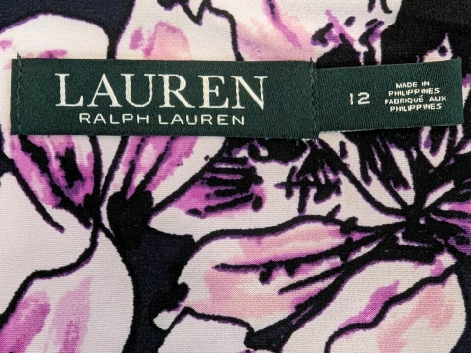 Ralph Lauren Lauren?Dress SZ 12 navy blue/purple floral short sleeve knee length. Condition is Pre-owned. Shipped with USPS Ground Advantage.