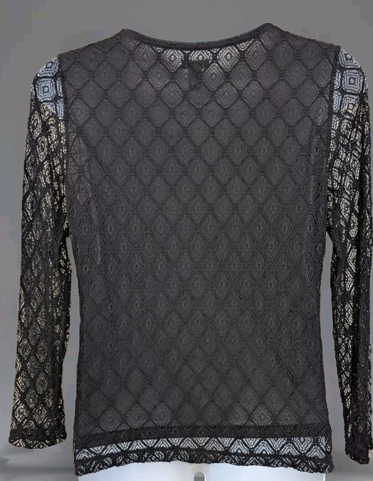 Chico's Women Top Blouse Shirt Size 3 Black Lined Lace Scoop Neck Long Sleeve