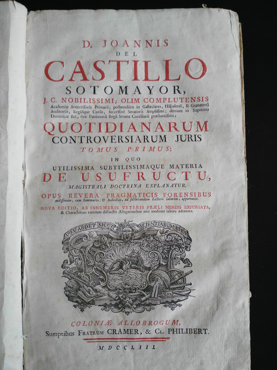 Castillo Opera Omnia Juridica 1 And 2 de Usufructu Latin año 1753 Mdccliii Unico