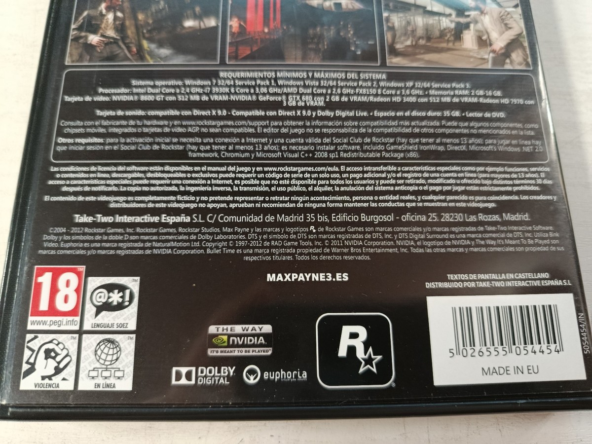Max Payne 3, Rockstar Games, PC DVD-ROM, Shooter in the third person, PC Action juego , Spanish Edition, Retro Video Games, Collection PC juegos Collection,juegos Classics, Noir Video Game, Pegi 18, Bullet Time, Max Payne Trilogía, Rockstar Spain, video game violence,juego In English Spanish texts We Are Based in Spain and Offer Carefully Curated Items: Vinyl Records, VHS Tapes, DVDs, Cassettes, Books