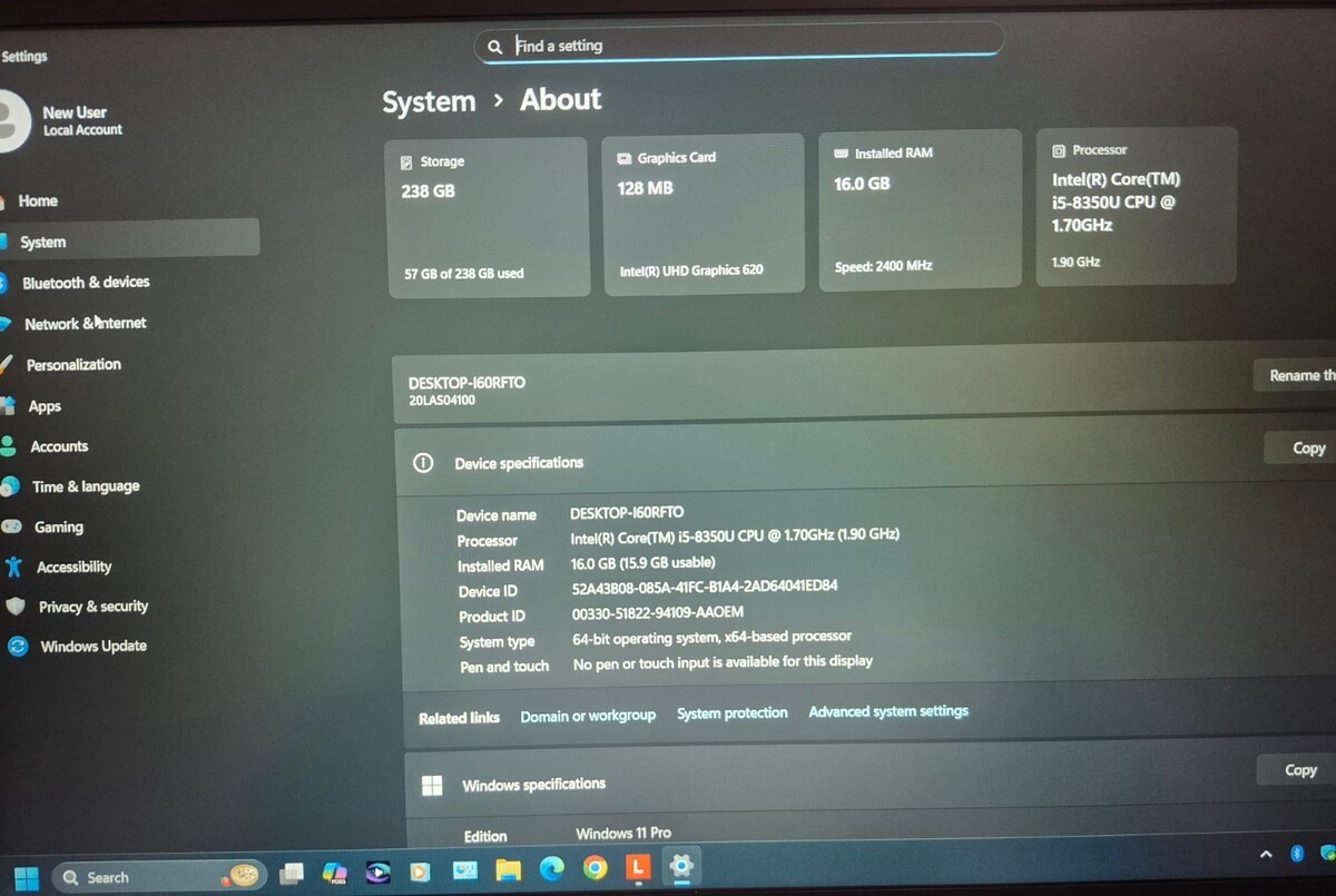 Intel Core i5 ~ 8350U @ 1.70GHz * 16GB Ram * 256 GB SSD