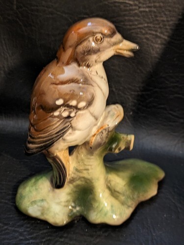 Questa statuetta Goldscheider Finch e una bella aggiunta a qualsiasi collezione. Dipinto a mano con dettagli intricati, questo pezzo in ceramica e porcellana presenta un design con rami di uccelli marroni ed e eterno. Perfetta per tutte le occasioni e per qualsiasi stanza, questa statuetta di medie dimensioni e un ottimo modo per aggiungere un tocco di stile viennese all'arredamento della tua casa. Realizzata negli Stati Uniti a meta del XX secolo dalla Everspiring Corp, questa statuetta originale Goldscheider e un must per i collezionisti di oggetti decorativi a tema di uccelli. Il pezzo viene fornito senza scatola ed e perfetto per essere esposto su uno scaffale o un tavolo. Aggiungi un tocco di fascino alla tua casa con questa statuetta unica e bellissima.