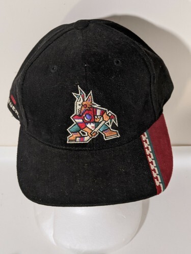 Cappello Ricamato Nero Bauer Center Ice Hook Loop Phoenix Coyotes NHL Anni '90