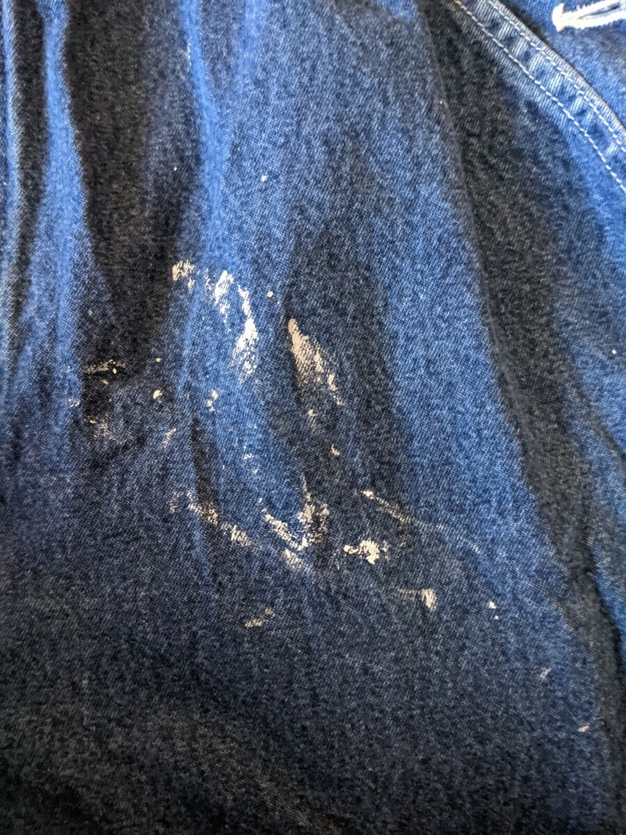 Carhartt Blue Denim Salopette Dritta Uomo Taglia 42 X 30 Macchiata Di Vernice