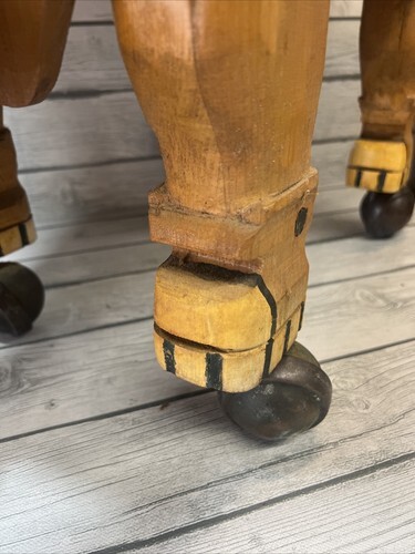 Note: this is handmade by someone. Purchased from an estate where the woman has collected elephants for the last 40 years . Gorgeous piece! Has rollers on bottom they may be able to be taken off, not sure. If you didn?t want it to roll. One tusk is a little loose, if it was to come off it could be re glued.