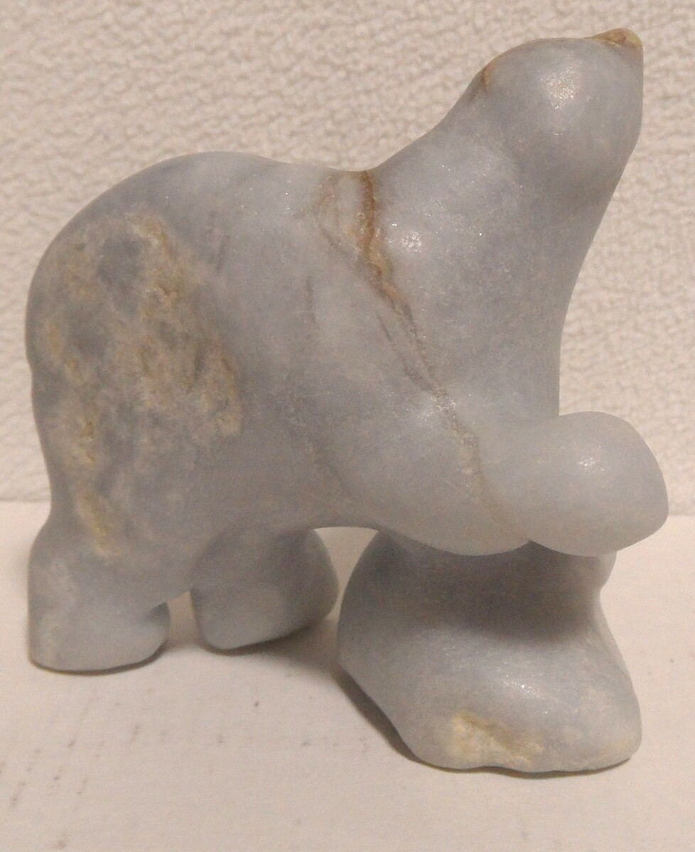 Artisan Hand Carved Opaque Calcite Alabaster "Polar Bear in the Rough" Carving