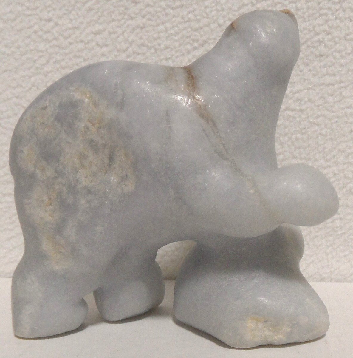 This carving has it's own uniqueness to it, definately a polar bear in the rough. Not like all those great pictures of the polar bear where you see fantastic white! In the rough wilderness their fur becomes matted, dirty and sometimes light brownish color. Of course depending on time of year!