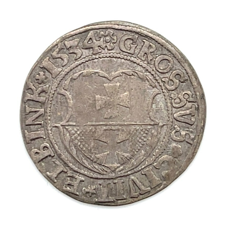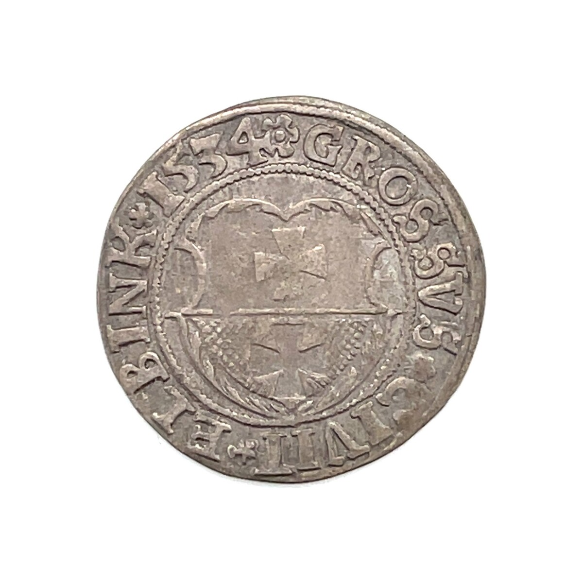 1534 Poland 1 Grosz (Groschen) Silver Coin Elbag Mint - XF
