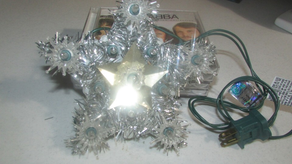 STAR SILVER w/11 mini lighfs green elec cord 6.5x6.5x2" (e bay BX 1)