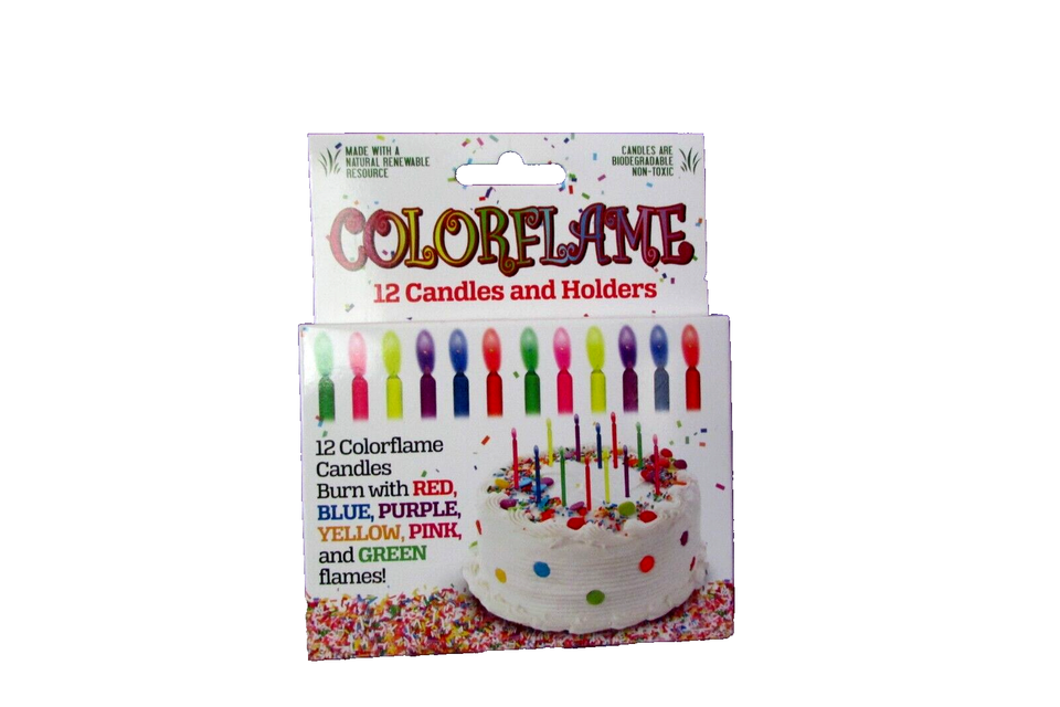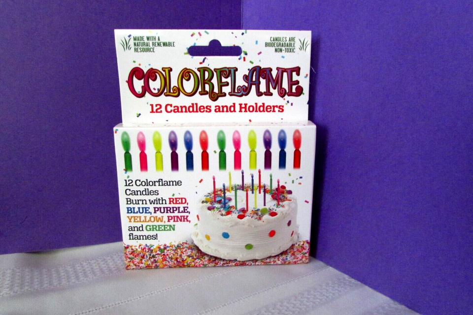 COLORFLAME 12 candles and holders, birthdays, parties PRICE EACH (FOX)