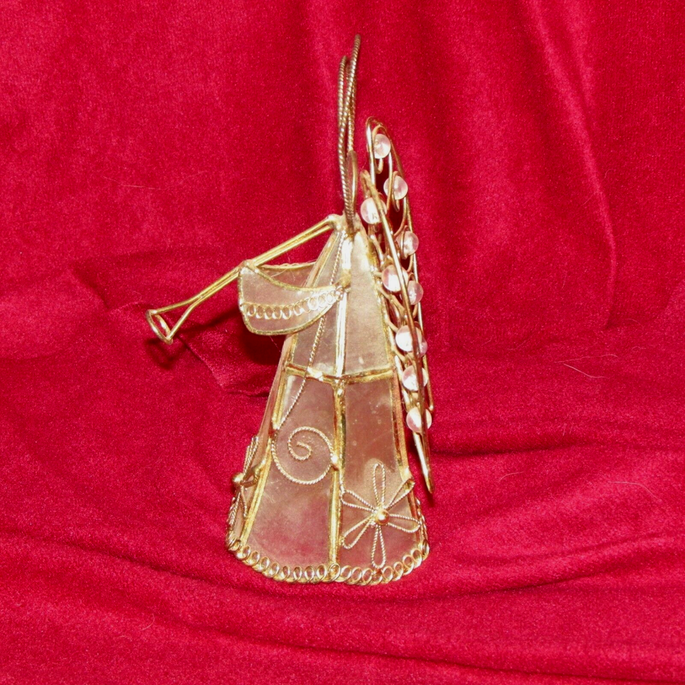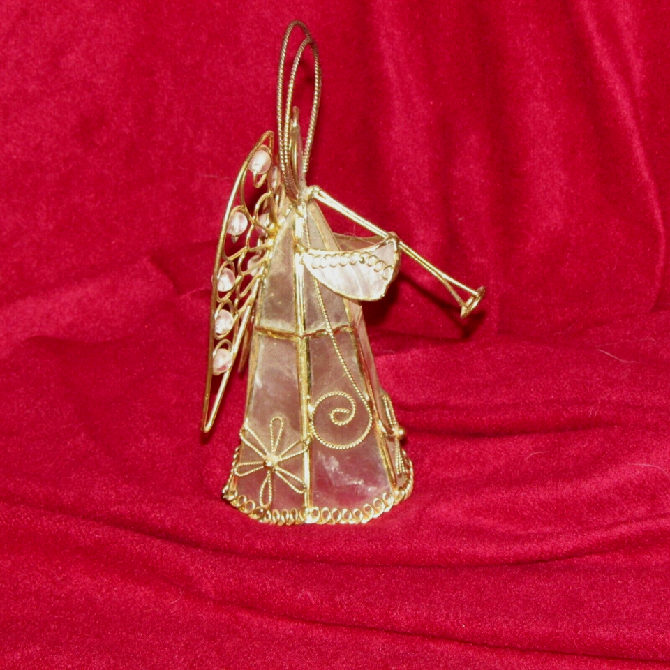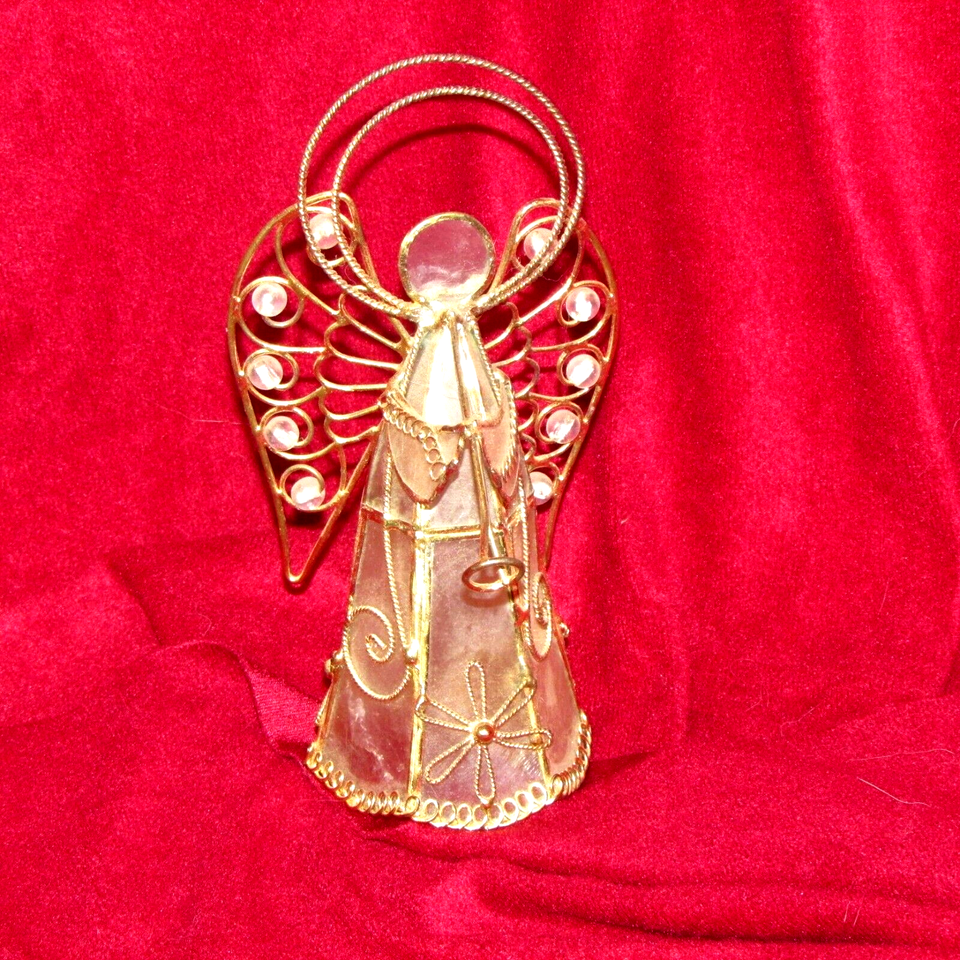 ANGEL white translucent face/gown, gold metal w/beads in wings (living rm)