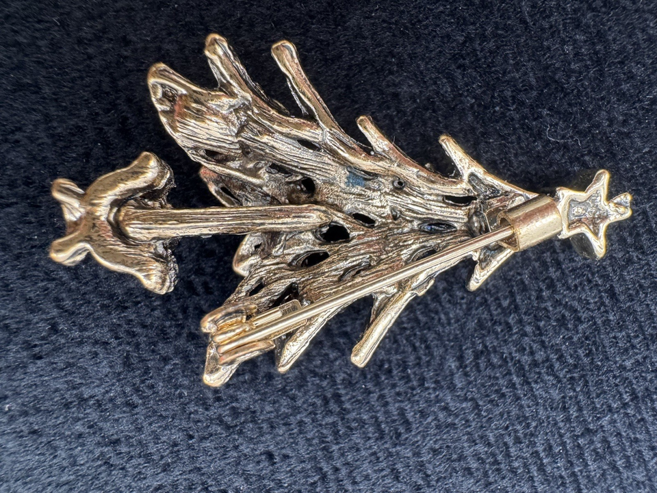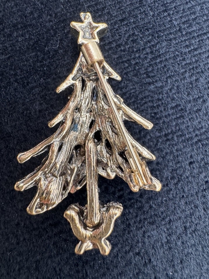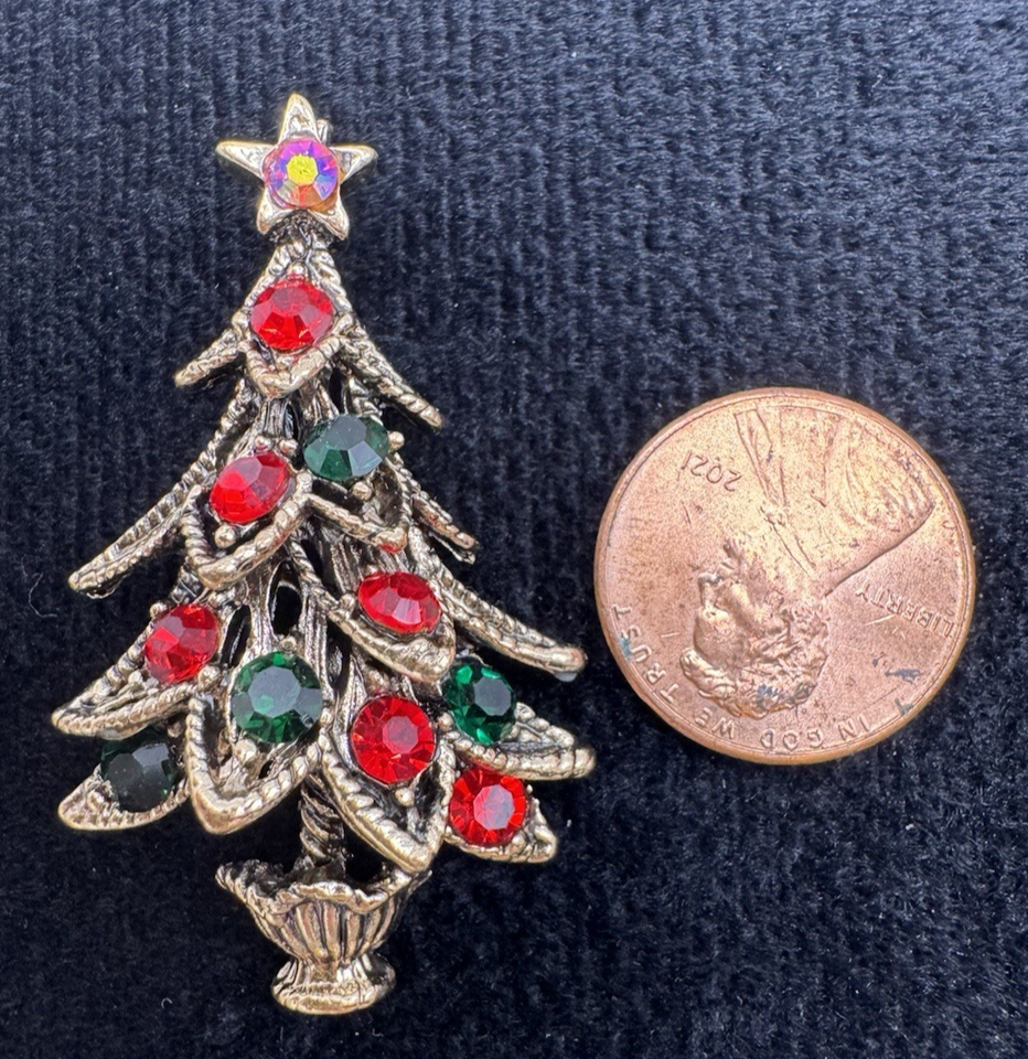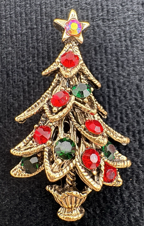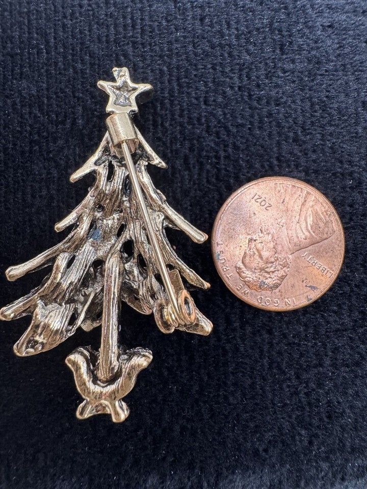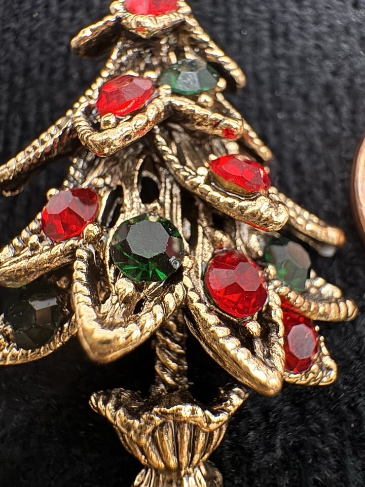 Vintage Christmas Tree Brooch Gold Tone Red and 50 similar items
