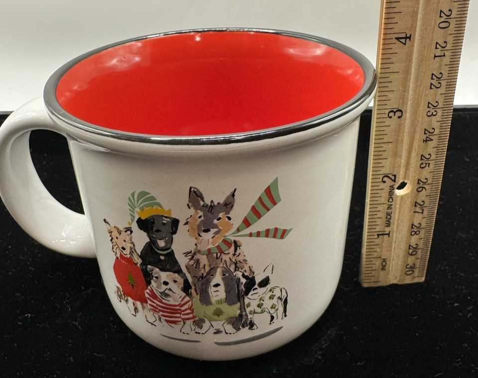 Title: Christmas Dog Mug Red Interior Campfire Style Holiday Puppies Coffee Cup