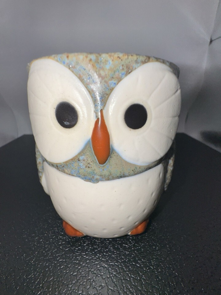 Ceramic Owl Mug Blue Speckled Pottery Coffee and 48 similar items