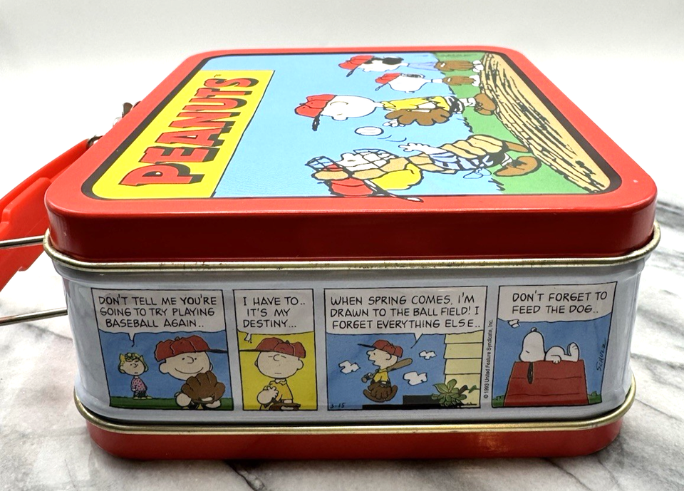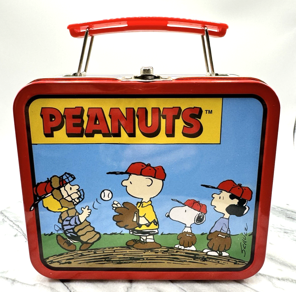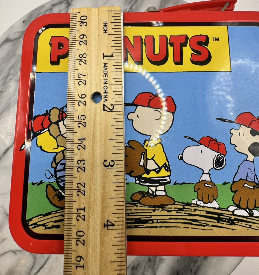 PEANUTS Snoopy Charlie Brown Baseball Metal Lunch Box Red Vintage Tin Mini