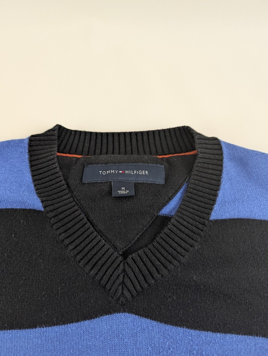 Tommy Hilfiger Sweater M Blue Black Stripe V and 27 similar items