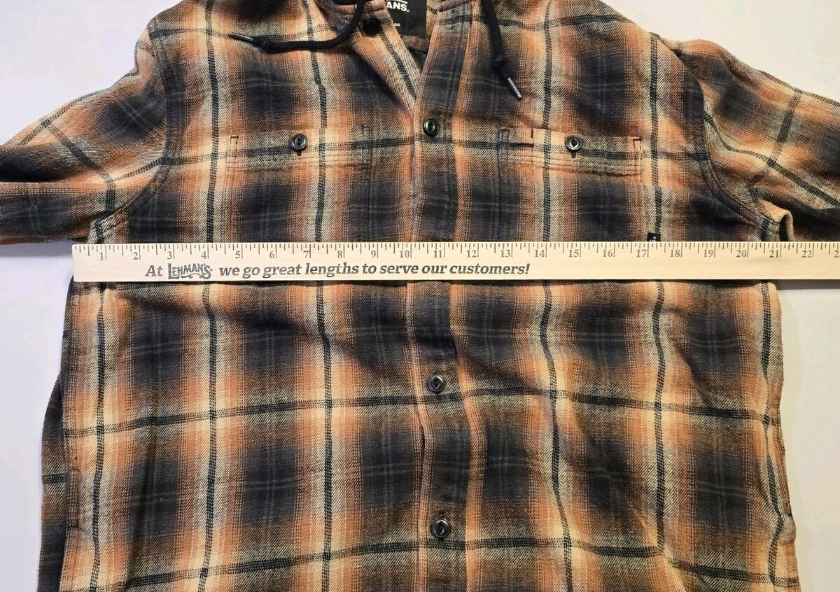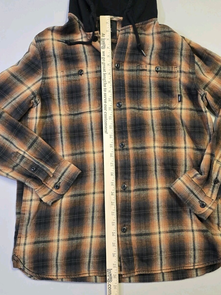 Vans Off The Wall Men’s Large Brown Black Plaid Flannel Hoodie Shirt Classic Fit