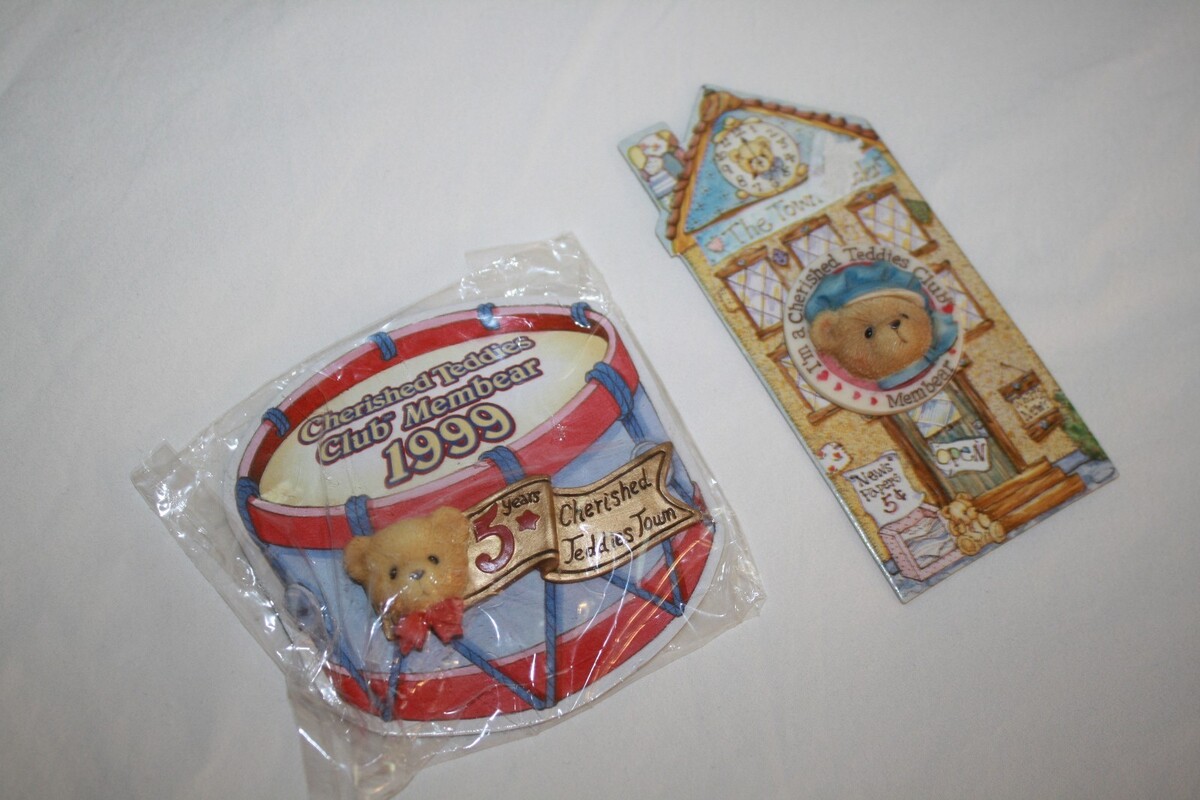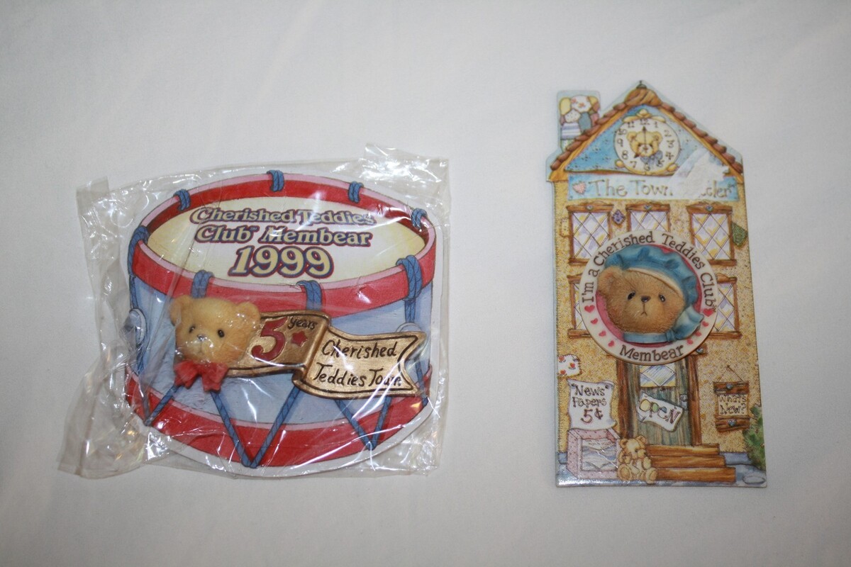 Features: 1995 I'm A Cherished Teddies Club Member Pin and 1999 5 Year Cherished Teddies Town Pin
