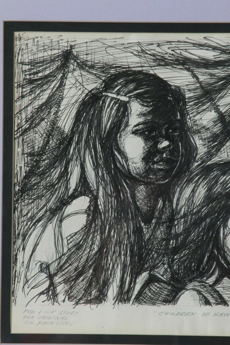 "Children of Hawaii" by Anthony Sidoni Pen & Ink Study for Oil Painting