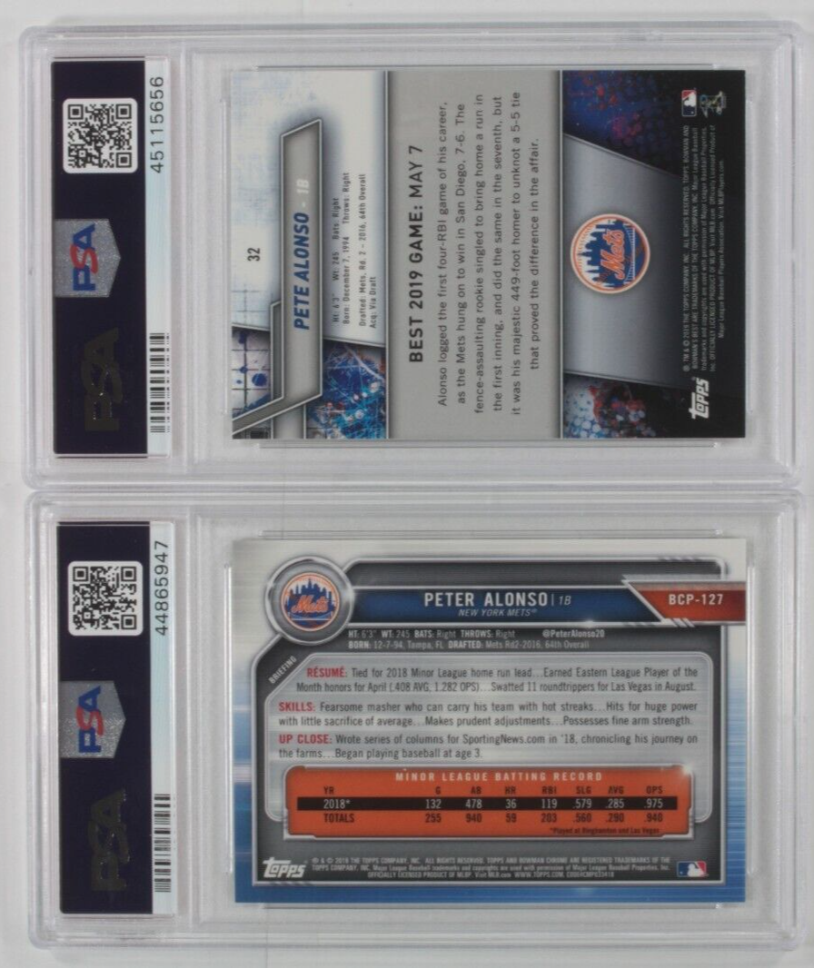 Lotto Di 2 PSA 10 Graded 2019 Bowman Pete Alonso Baseball Cards