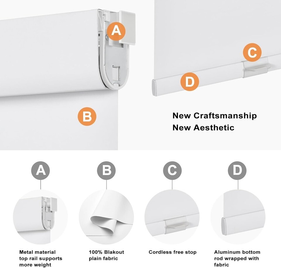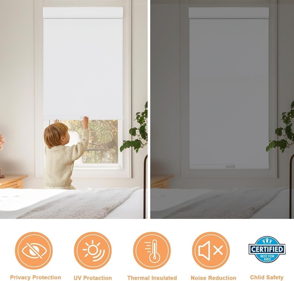 Persilux No Drill No Tools 100% Blackout Blinds for Window White 47" W x 72" H