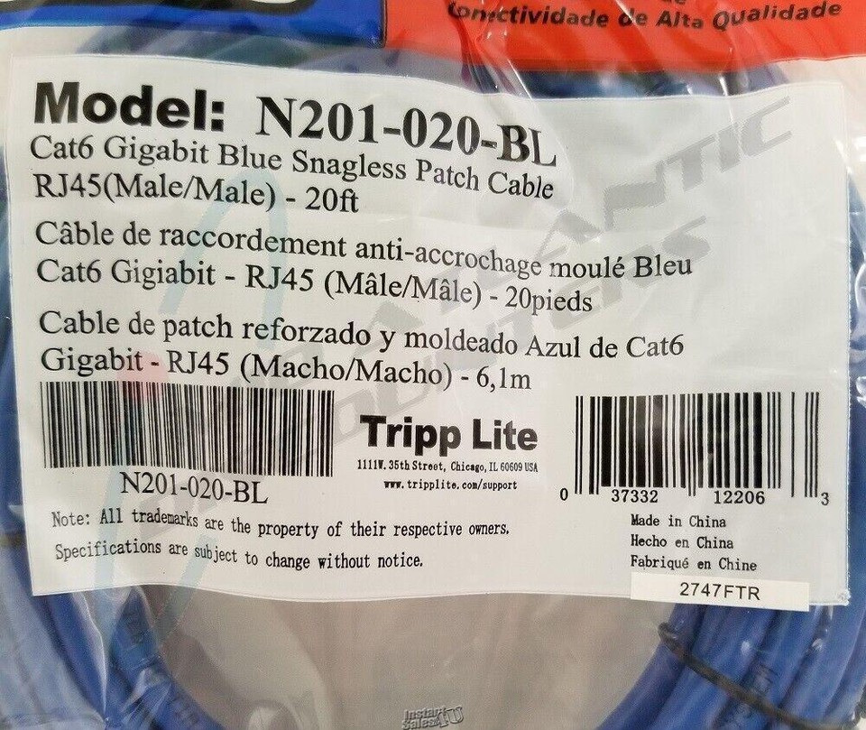 Tripp Lite 20FT RJ45 Male Cat6 Gigabit and similar items