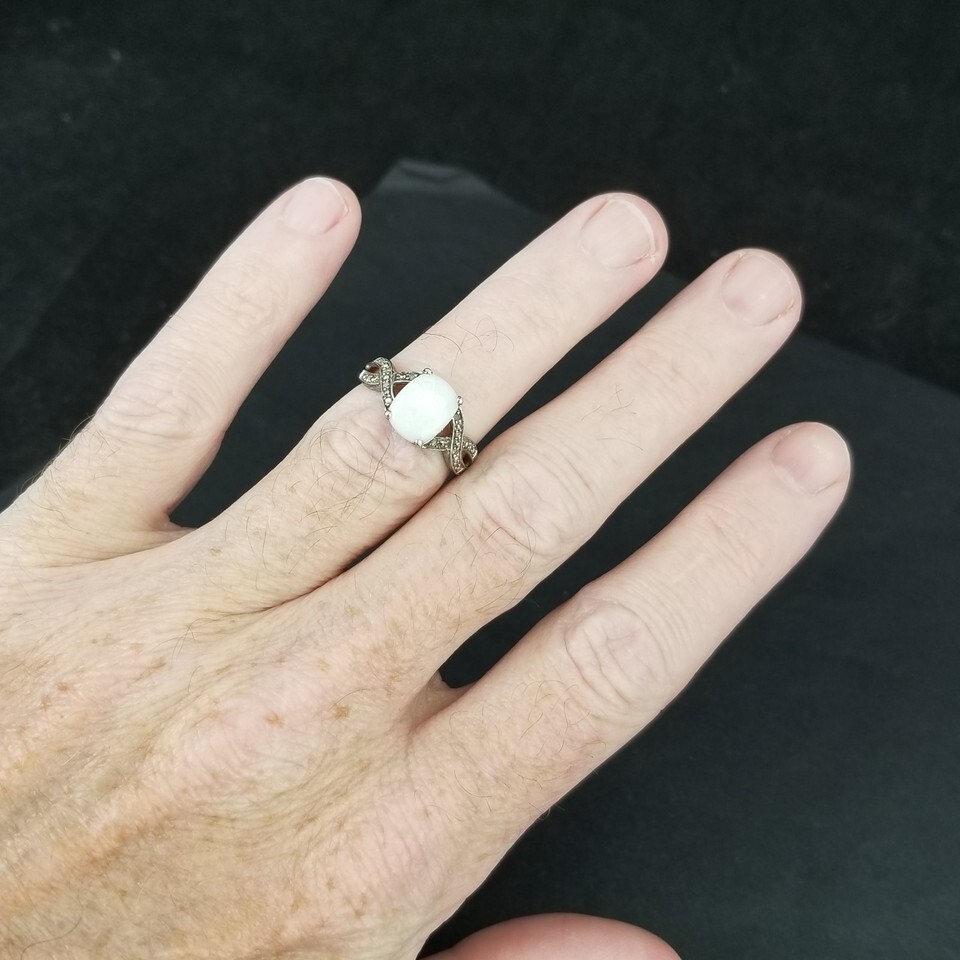 STERLING SILVER & OPAL womens "BGE" ladies ring SIZE 8 white .925 Estate Sale!