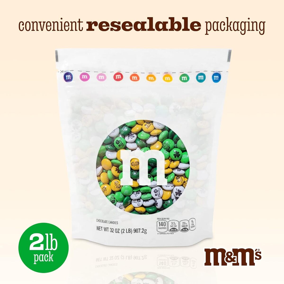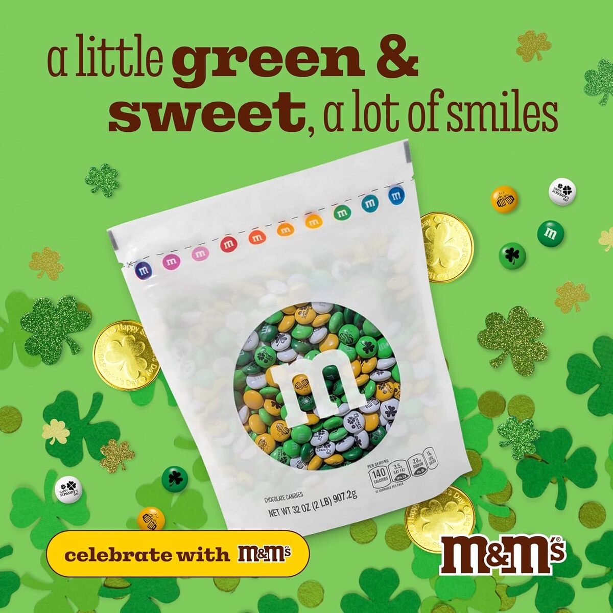 M&M's St. Patrick's Day Chocolate Candy 2 LBS Green White Gold Guaranteed Fresh
