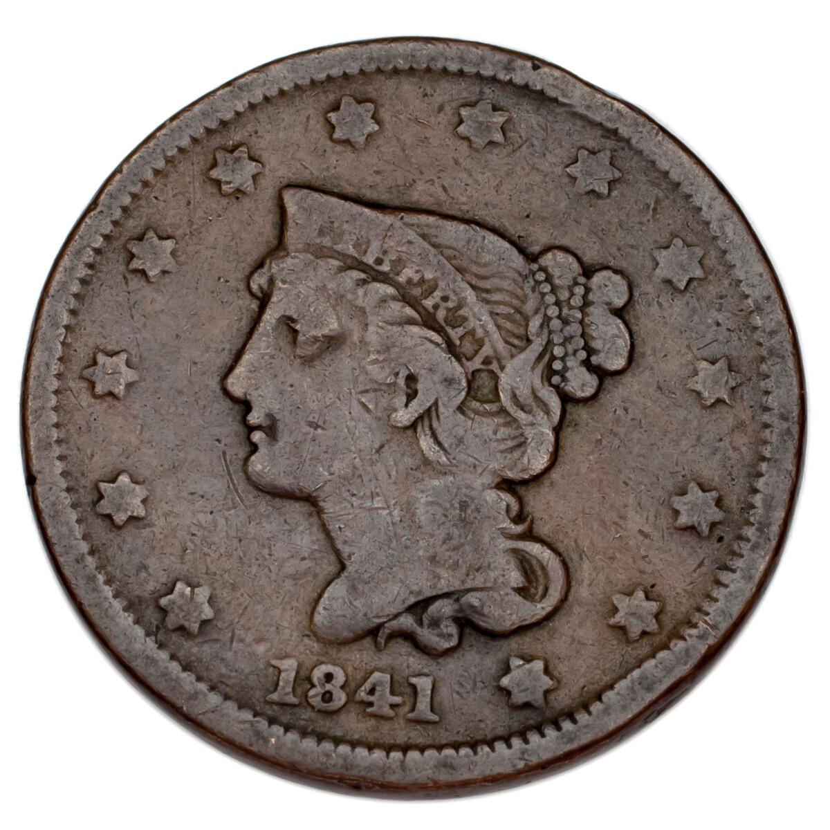 1841 Braided Hair Large Cent 1C Penny (Very Good, VG Condition)