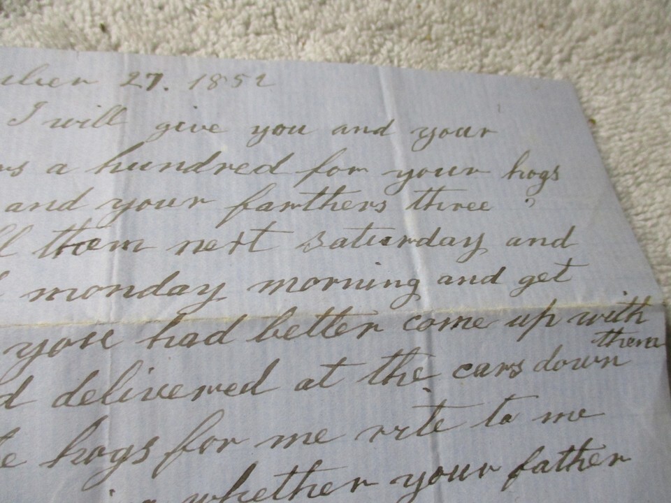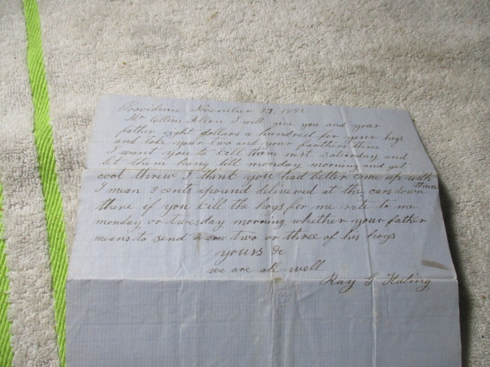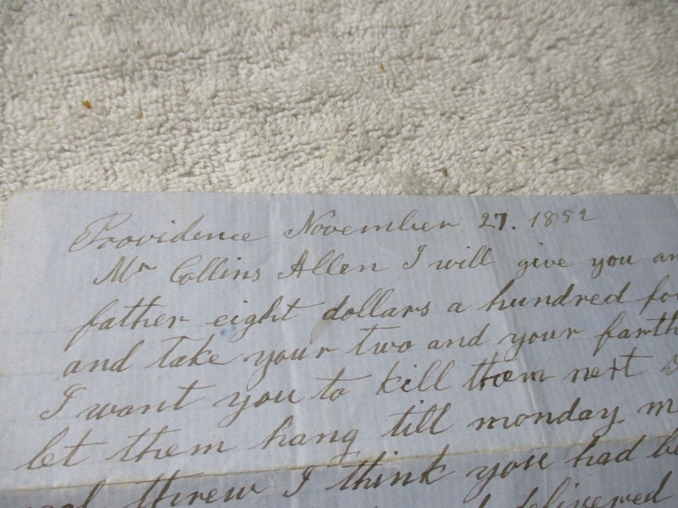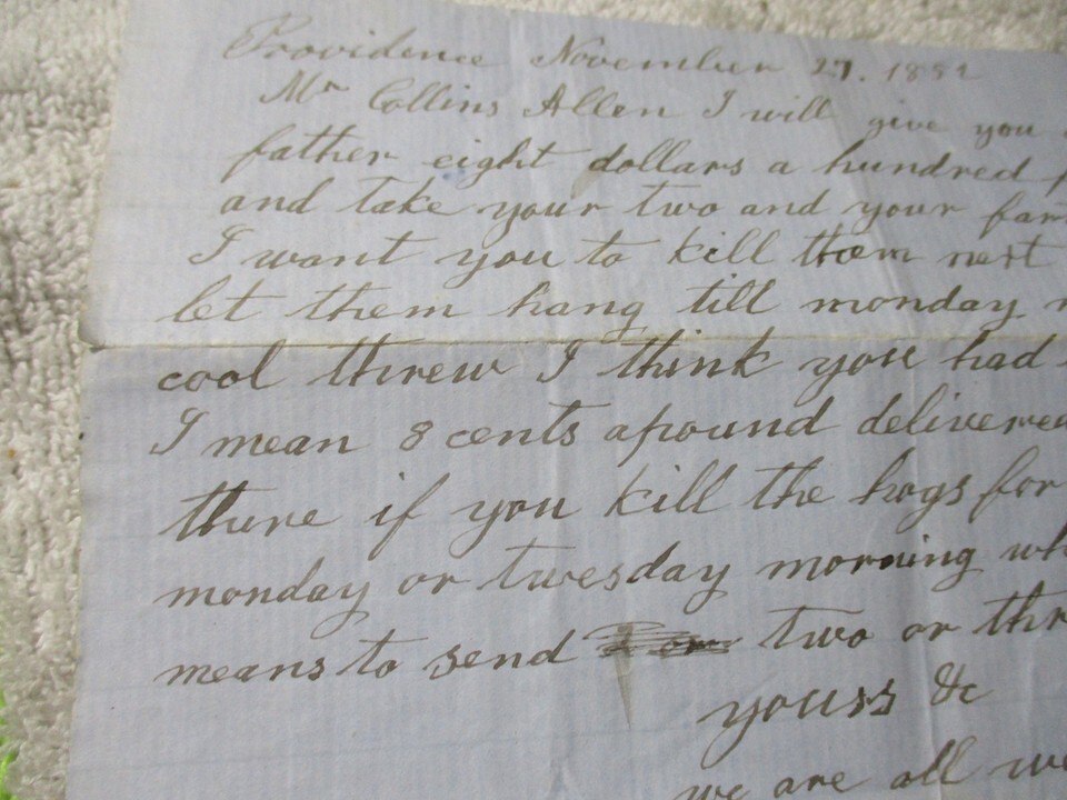 1852 Providence Rhode Island Hogs bill of sale promise letter November 27th