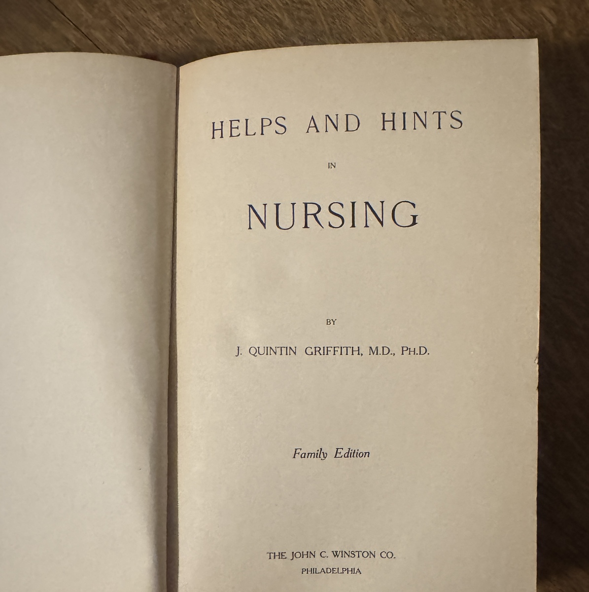 Title: 1905 FIRST EDITION | Helps and Hints in Nursing by J.Q. Griffith, M.D. | Family Edition