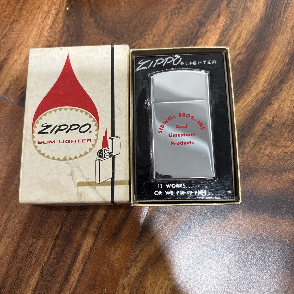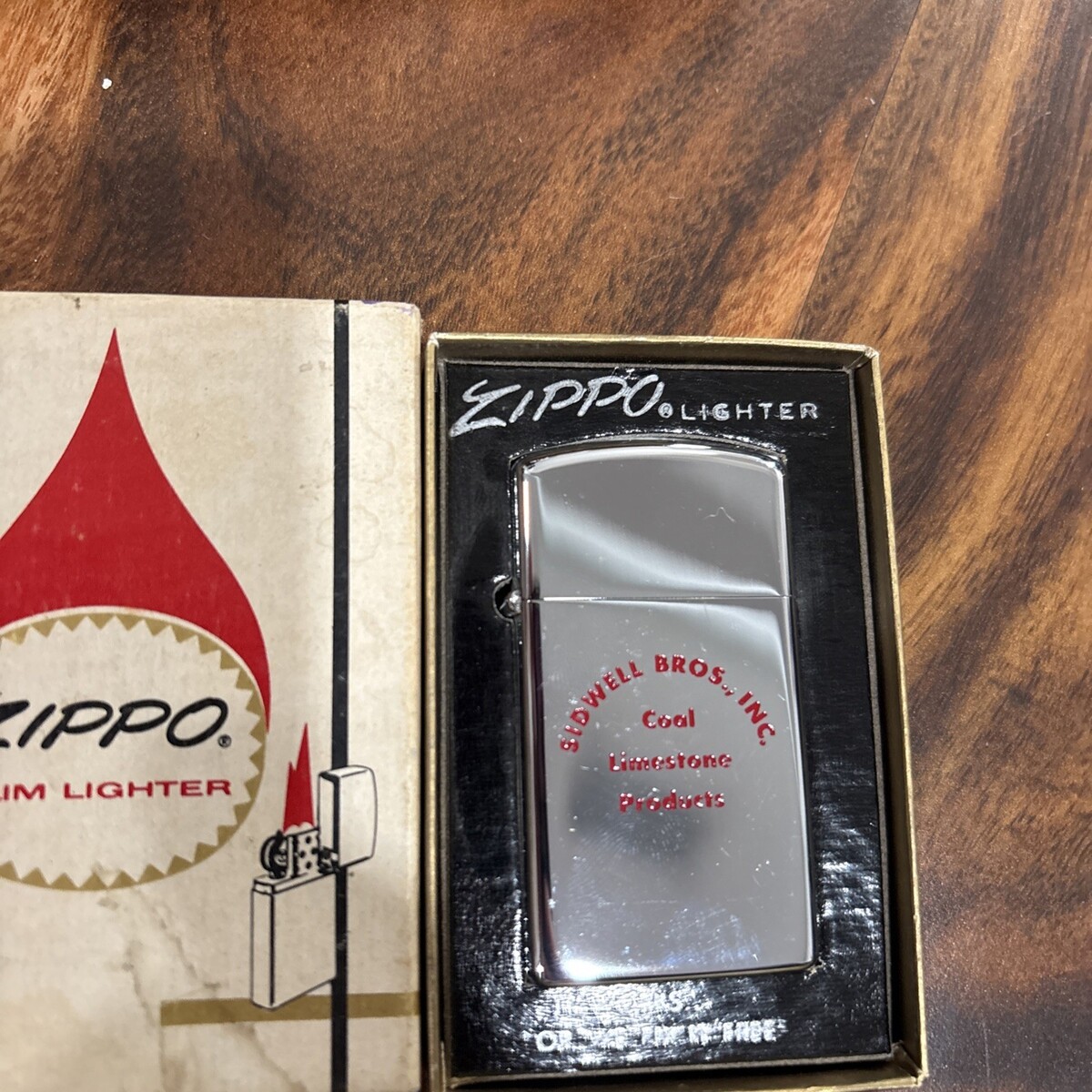 VINTAGE SIDWELL BROS INC SLIM ZIPPO LIGHTER IN BOX