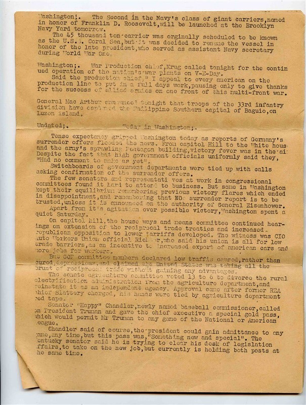 Original Aboard U S S Ericsson at Sea Newspaper Germany Surrenders 29 April 1945