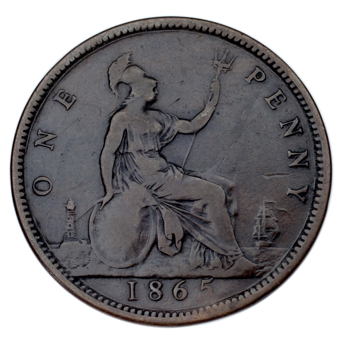 1865 Großbritannien Penny VF Zustand KM #794.2 Felgenstoß am Rx