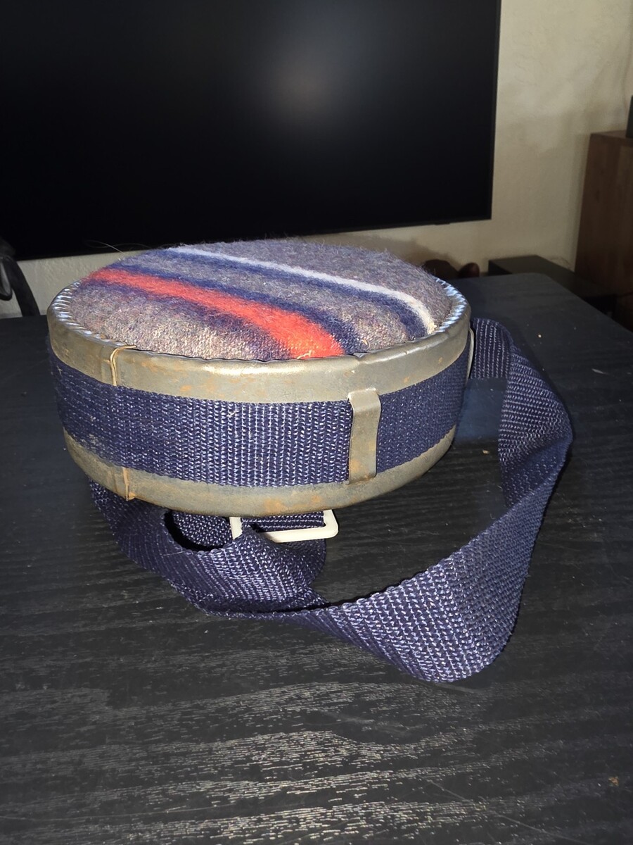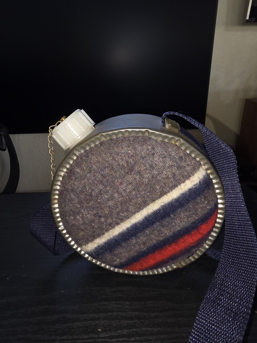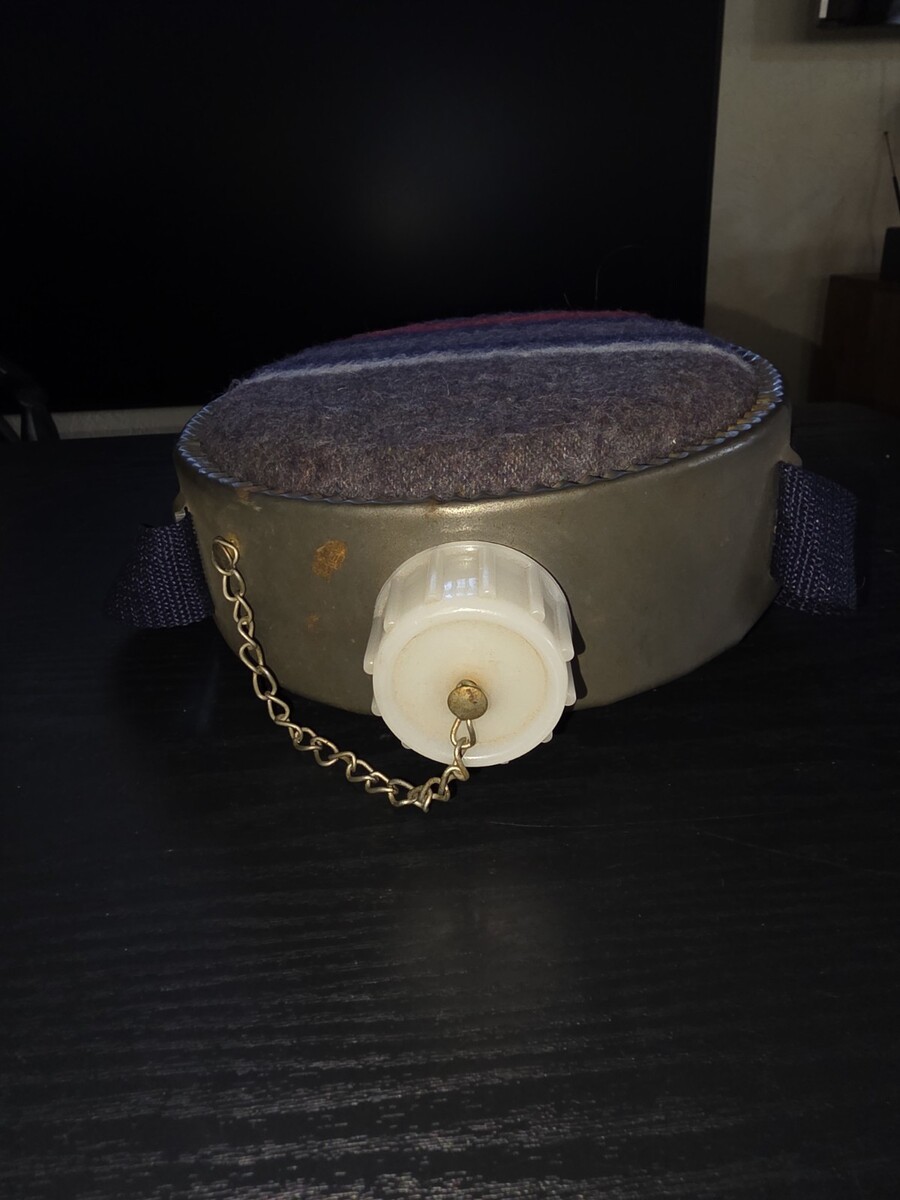 Vintage Metal Boy Scout Canteen with Wool/Flannel Sides, 7-1/2 Inches Round