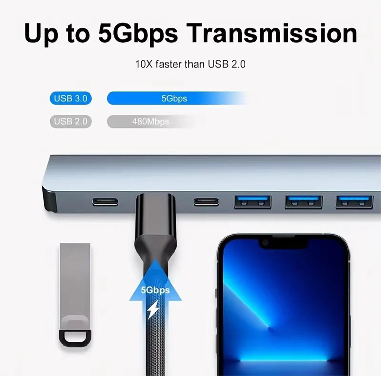 8-in-1 USB-C Hub Dock with USB 3.0, USB 2.0 & SD/TF Card Reader