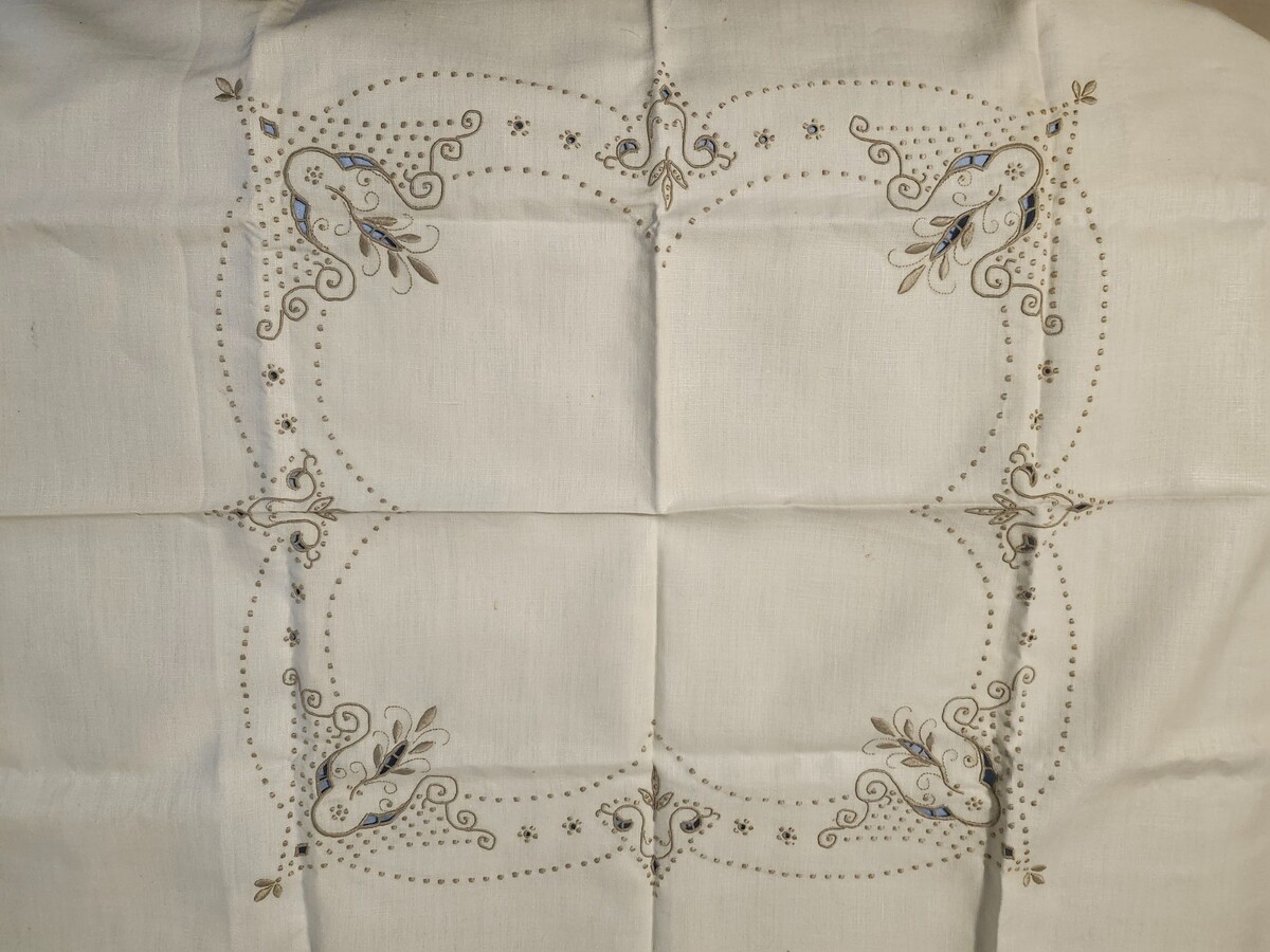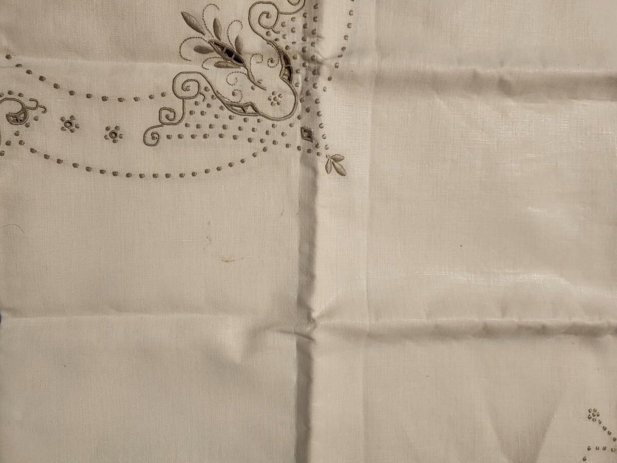 Vintage Cream Madeira Embroidered Cutwork Table Cloth 39" square