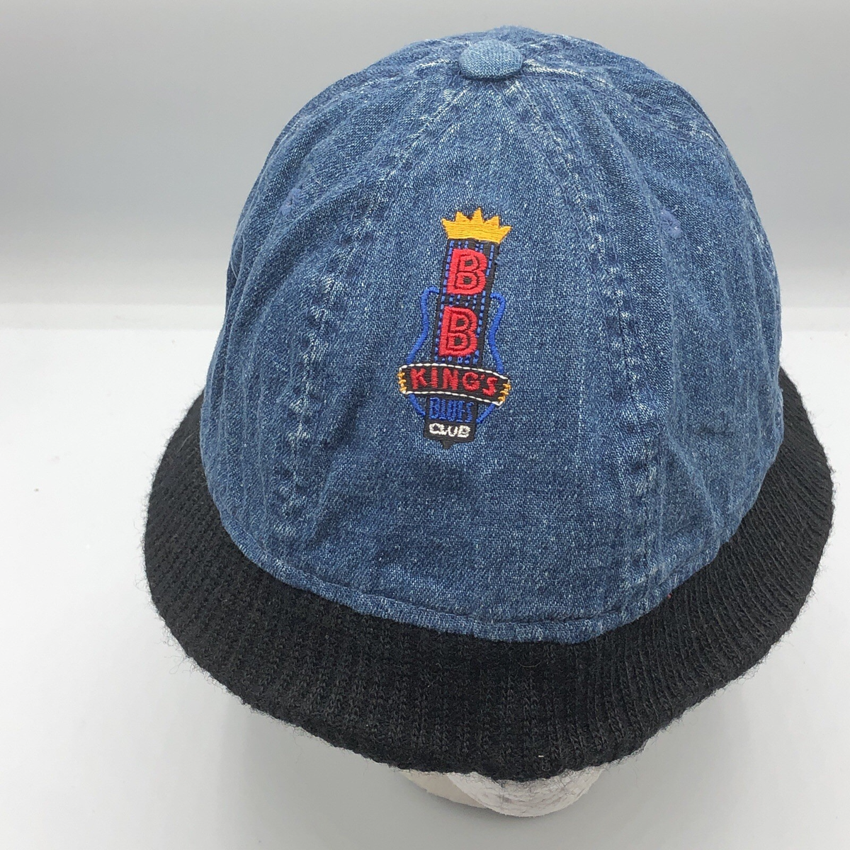 Vintage BB Kings Blues Club Memphis Roots Denim Bucket Hat Black Knit Trim