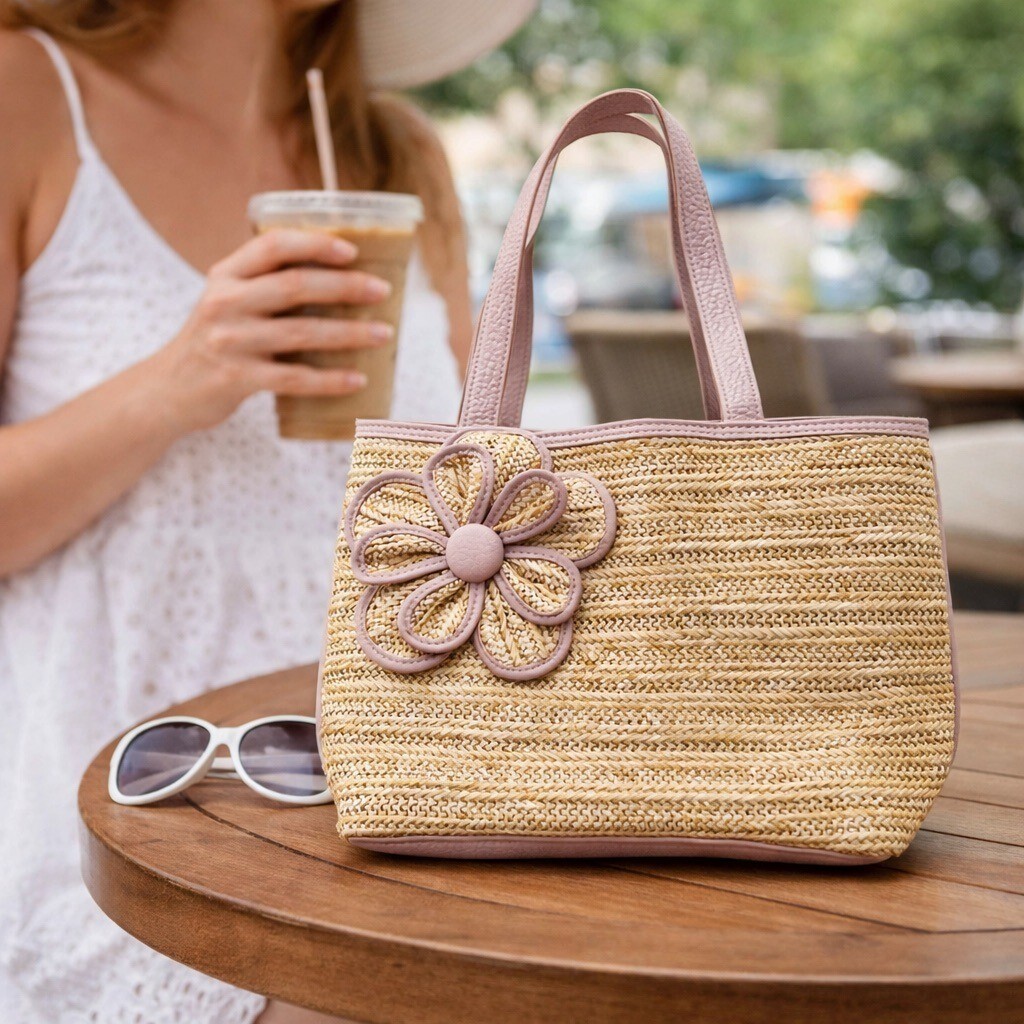 Bueno Straw Tote Bag Purple Faux Leather and 50 similar items