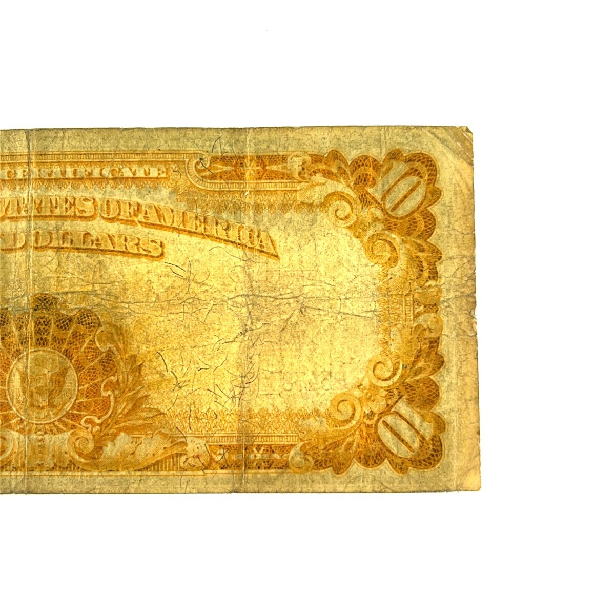 Fine+ Condition. Uneven margins. Edges are sharp with a few minor creases. Several vertical and horizontal folds. Creases and fold lines all over the bill. Minor tears on side margins. Normal discoloration and yellowing from age and use. Staining on both sides of the bill. No graffiti or pinholes. Please review photos carefully and message us if you have any questions or concerns.