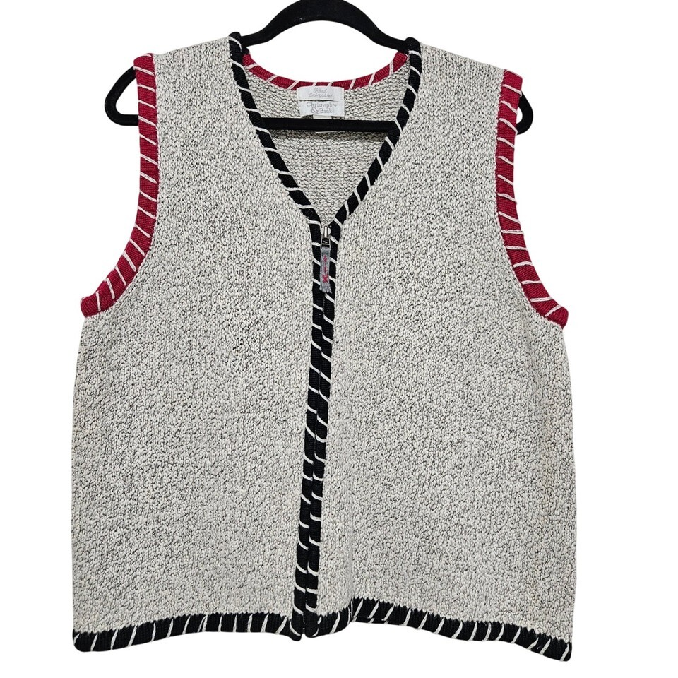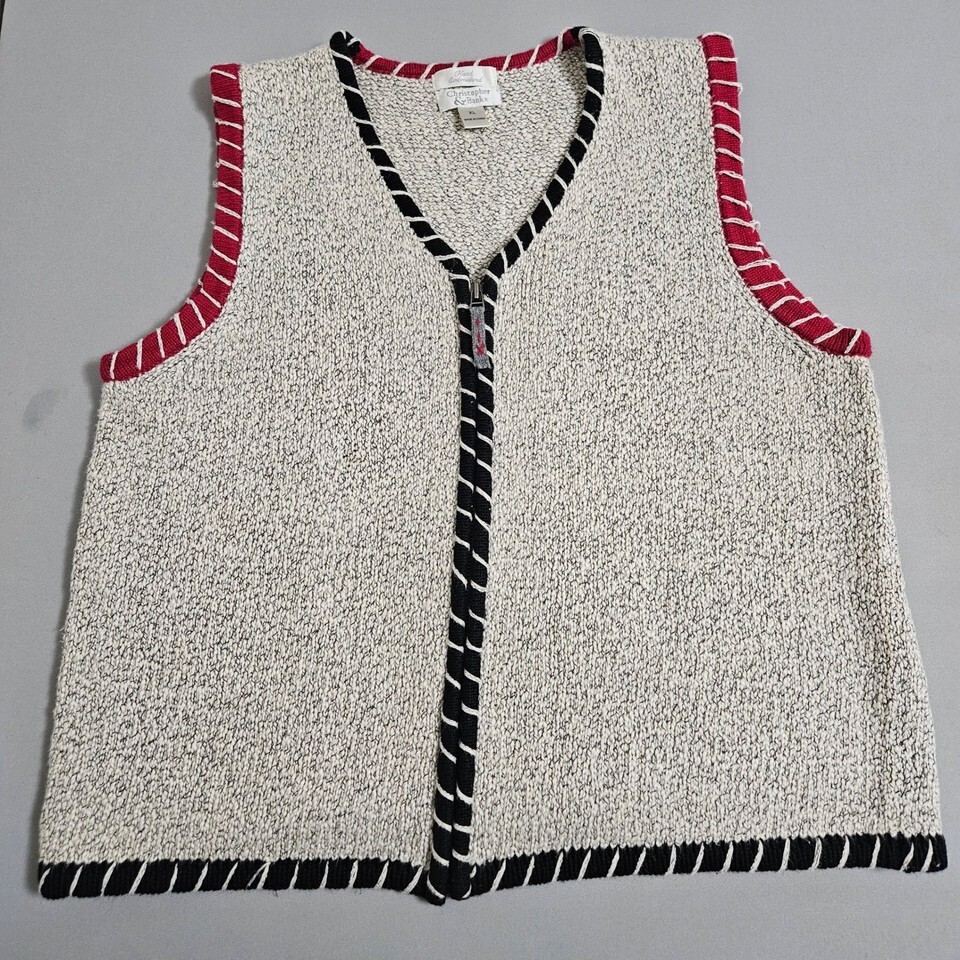 Christopher Banks 2004 Y2K Chunky Knit Zip Vest Textured Boho Coastal XL Granola