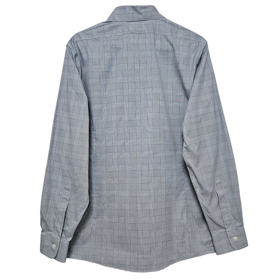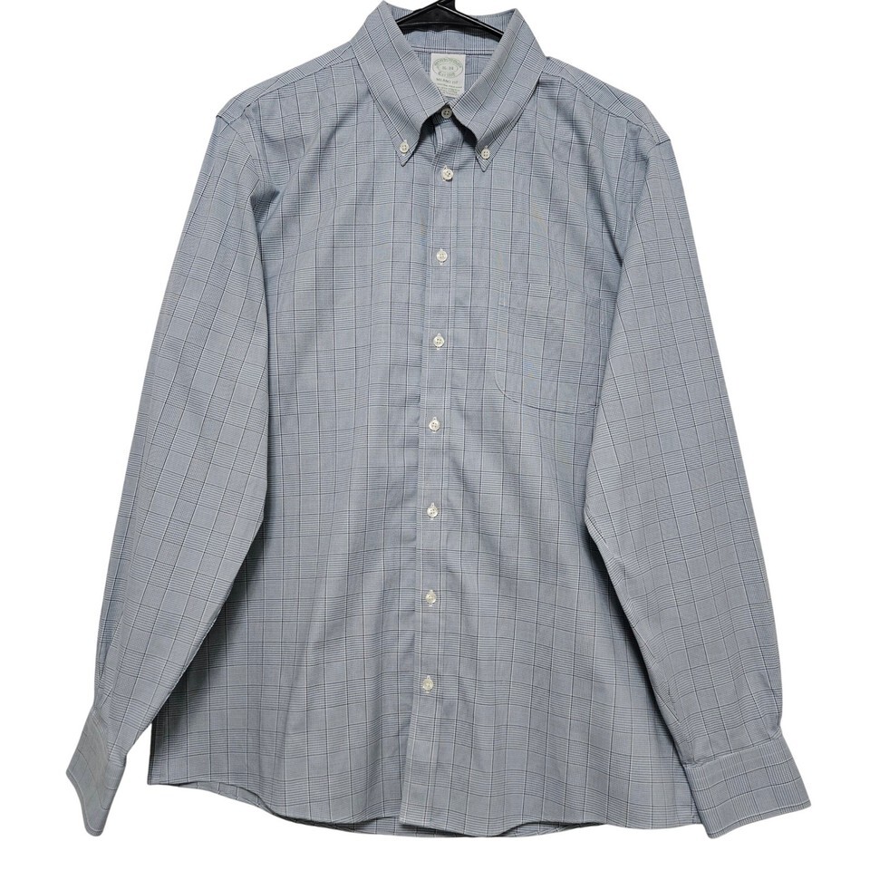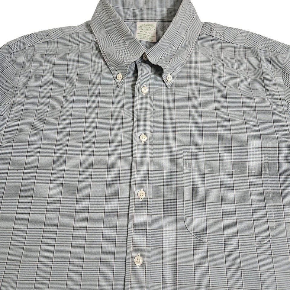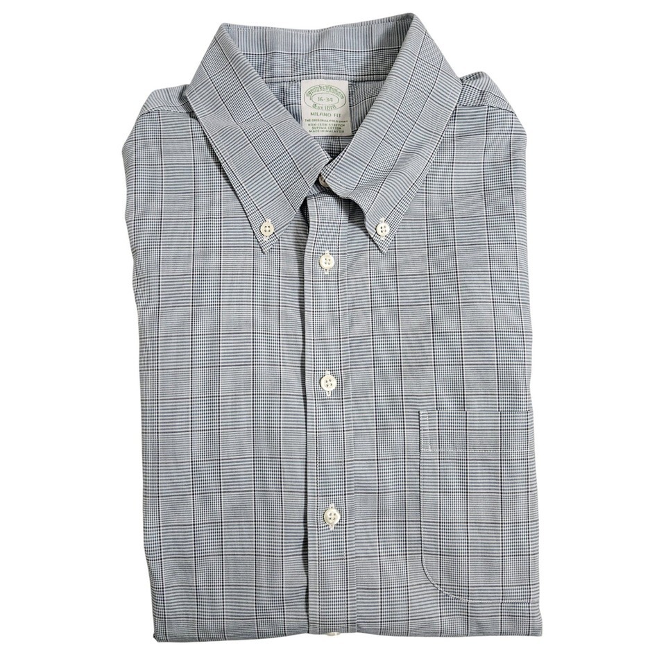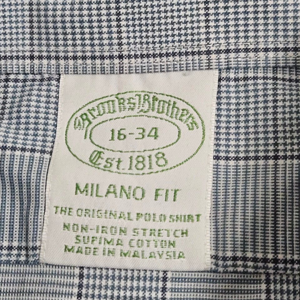 Brooks Brothers Milano Fit Plaid Dress Shirt Blue Gray Quiet Luxury Ivy 16 34