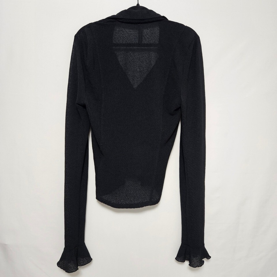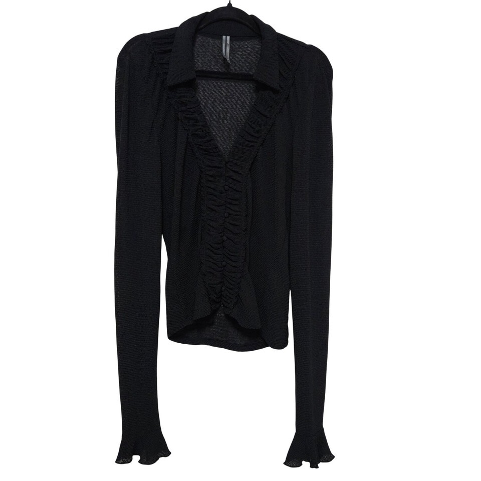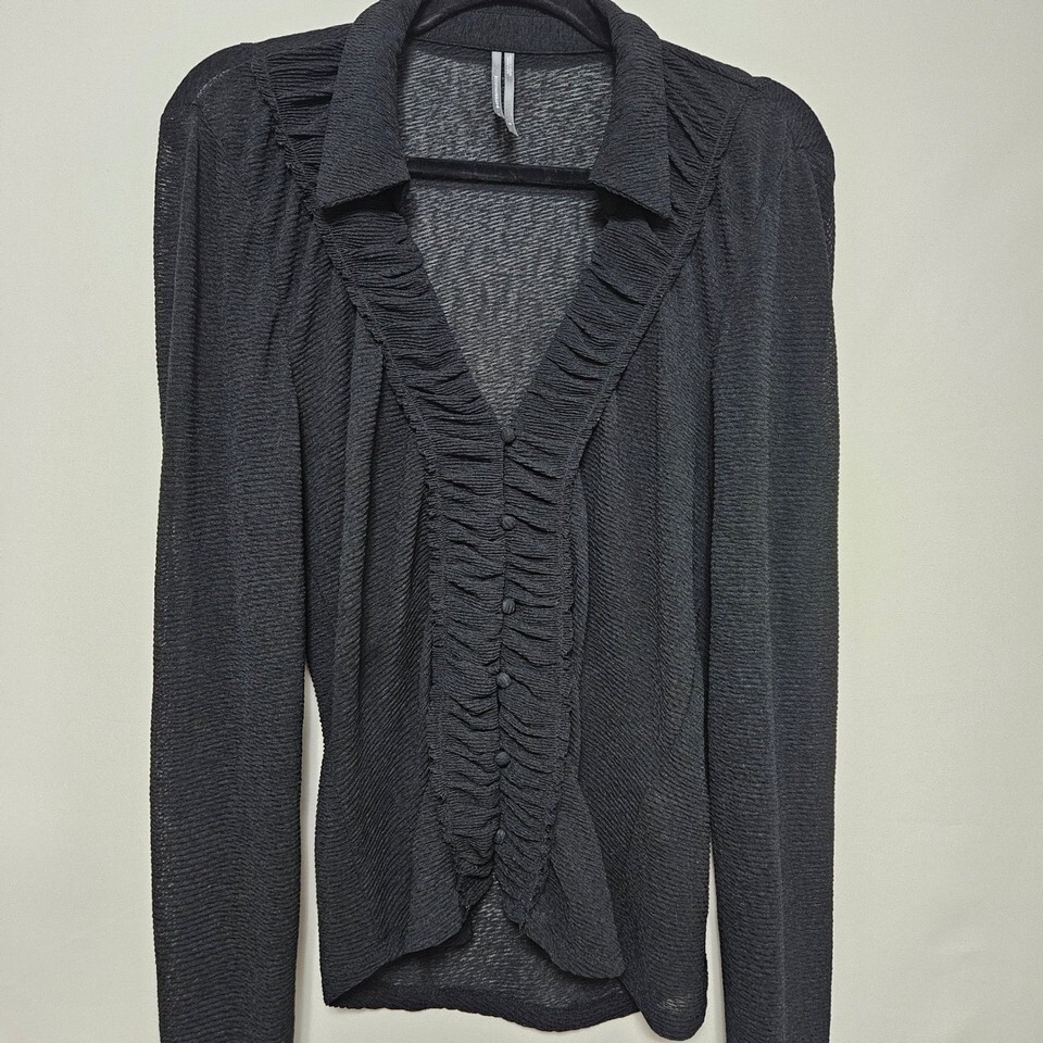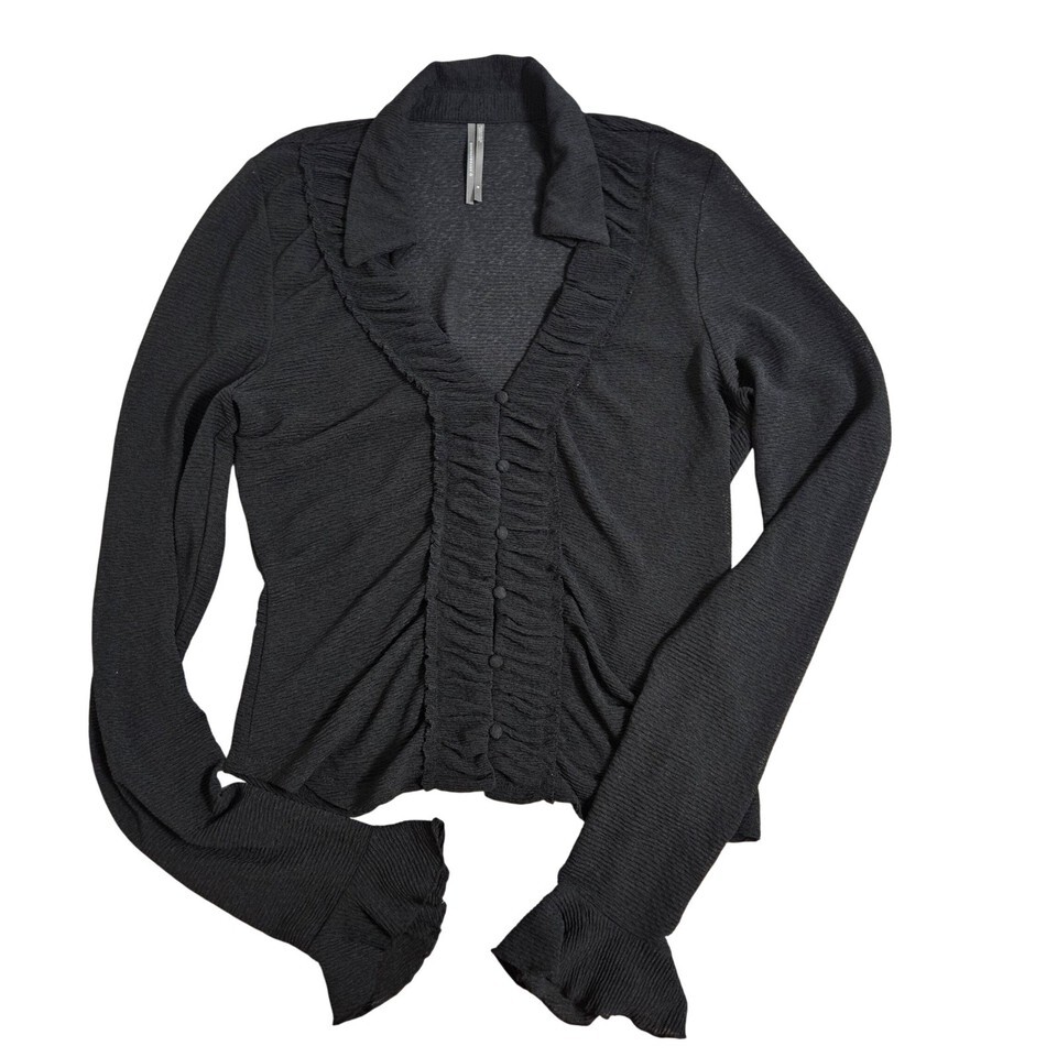 Anthropologie Whimsigoth Black Sheer Ruffle Blouse Romantic Gothic Button Up Med